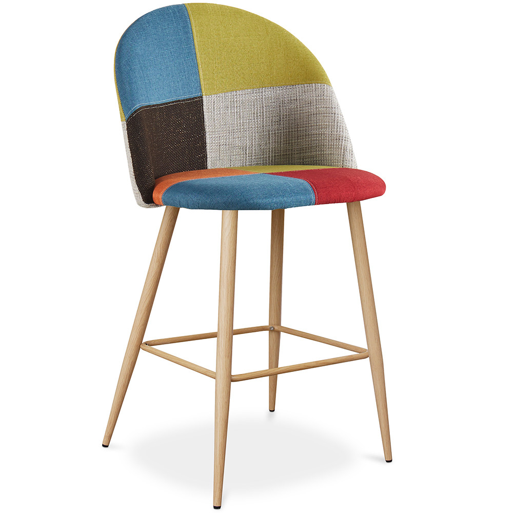Tabouret de bar scandinave rembourré en patchwork au design simple et élégant avec une base de 65cm de hauteur. Ses pieds métalliques solides et robustes assurent la sécurité. Ce tabouret Evelyne Simona est une solution idéale tant pour un bar que pour une salle à manger moderne. Le siège en bois et les pieds en métal couleur bois le rendent confortable, stable et très élégant. Le tabouret de bar convient à tout intérieur spacieux et contemporain. Dimensions : 55 cm x 49 cm x 102 cm (L x l x H)