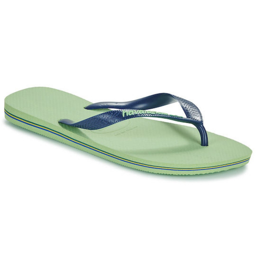 Modèle HAV. BRASIL LOGO de marque Havaianas Bleu 1822citron Doublure Gomme. Extérieur Gomme. Type de construction: Injection. Fabrique en Brésil.