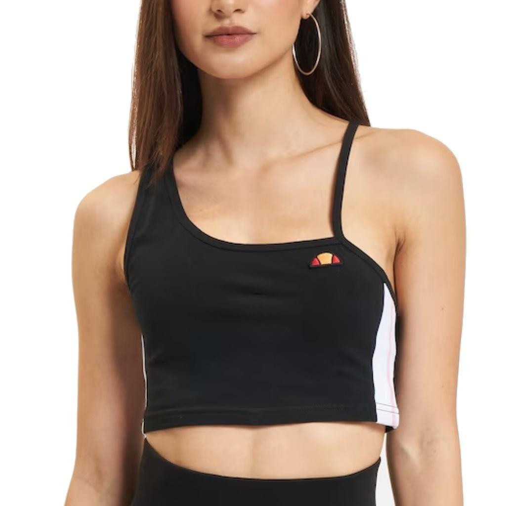 Modèle PLAYSOL CROP TOP de marque Ellesse Noir Doublure Textile. Extérieur Textile. Type de construction: Cousu. Fabrique en Vietnam.