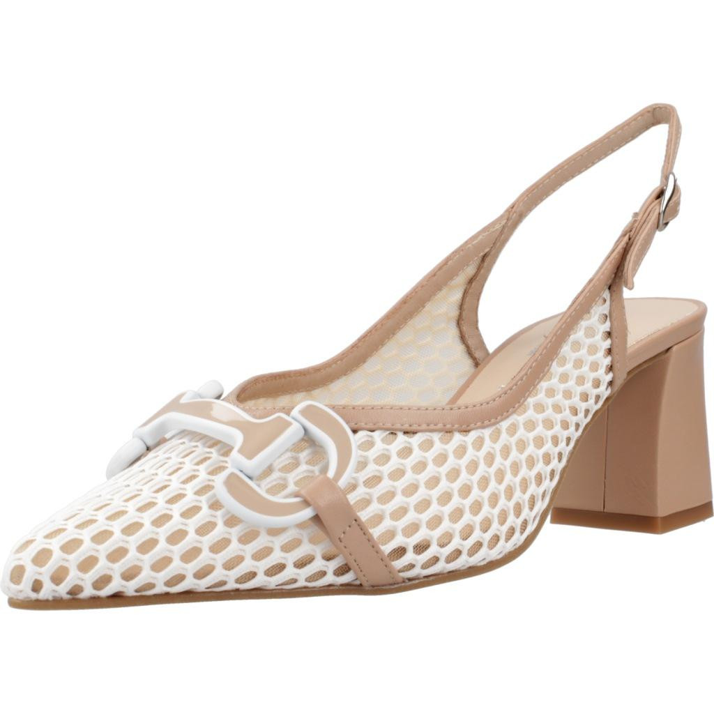 Modèle 120852D de marque Dibia Blanc Doublure Peau. Extérieur Peau et Textile. Type de construction: Coincé. Talon du 7 cm. Fabrique en Espagne.
