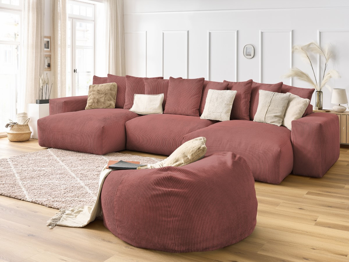 LA COLLECTIONEn quête d'une touche de modernité pour votre salon ? Découvrez la nouvelle collection VOLTAIRE de Bobochic. Grâce à un design singulier et moderne, transformez votre séjour et donnez-lui un côté cocooning. Profitez d'un sublime velours côtelé, au confort de grande qualité, ainsi que de coloris délicats et raffinés pour vous apporter toute la douceur dont vous rêvez ! Retrouvez tous les canapés de la collection VOLTAIRE et sublimer votre décoration d'intérieur !LE PRODUITUne nouvelle création originale Découvrez tout le savoir-faire et le sens du design de Bobochic avec notre nouvelle création originale : la collection VOLTAIRE. Ainsi, la marque Bobochic a soigneusement sélectionné les meilleurs bois afin de vous offrir un canapé stable, robuste et durable. Sans trahir notre engagement environnemental puisque la marque a fait le choix d'un bois de qualité pour sa structure. Ainsi, ces canapés vous accompagneront pour de longues années, et ce, sans jamais perdre de leur confort et de leur beauté ! Le canapé moderne par excellence Héritier du style moderne, le canapé VOLTAIRE illuminera votre séjour. D'une part, grâce à ses formes arrondies, ses accoudoirs larges et accueillants, ainsi qu'une grande jetée de coussins. D'autre part, ce canapé s'inscrira à merveille dans toutes les décorations d'intérieur et offrira cette touche de modernité et de douceur qui manque à votre salon. Le velours côtelé, un tissu doux et résistant Pour cette nouvelle collection, Bobochic a fait le choix du velours côtelé. Outre un visuel teinté de noblesse et d'élégance, il offre de nombreux avantages en matière de confort. En effet, le velours côtelé est un tissu épais et particulièrement doux. De ce fait, il vous offre un confort équilibré particulièrement agréable. Sans oublier qu'il retient la chaleur. Avec l'approche de la période hivernale, ce dernier saura votre meilleur compagnon pour rester au chaud. Enfin, profitez d'un canapé qui résistera au temps et aux aléas du quotidien, notamment grâce à un velours côtelé anti-bouloches et résistant aux accrocs. Un confort équilibré et durable Les canapés VOLTAIRE proposent un confort équilibré inégalable, et ce, grâce à la combinaison entre la douceur du velours côtelé et le choix de la mousse pour le dossier et l'assise. Cette dernière se montre indispensable, car elle offre un soutien total sur l'ensemble du corps. Ainsi, que ce soit pour de petites pauses ou de longues sessions de repos, le canapé VOLTAIRE maintiendra parfaitement votre corps. Qui plus est, cette mousse préservera le confort du canapé sur le long terme. MêmeLONG : 420 cm / LARG : 174 cm / HAUT: 75 cm