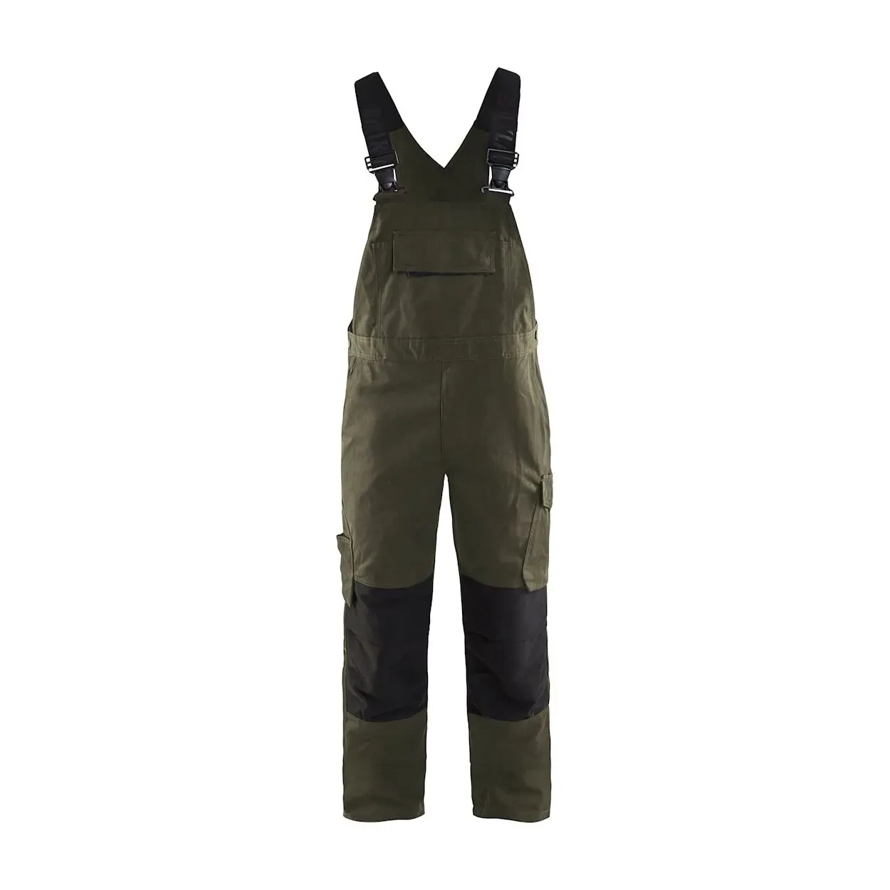 Salopette ripstop durable et fonctionnelle. Pour un ajustement et un confort optimaux, le pantalon a des panneaux élastiques sur les mollets et l’intérieur des cuisses, ainsi que le haut des poches genouillères et les poches genouillères en CORDURA®. D’autres détails ont été soigneusement sélectionnés tels que des détails réfléchissants discrets, une poche téléphone en maille, une poche règle et un porte-couteau pratique. Non recommandé pour les métiers de l'industrie. +stretch signifie que certaines parties du tissu sont stretch - Combinaison sans manches Symbole - Ripstop, Parties stretch Caracteristiques principales - 2695 - Conducteur d'engins - Transporteur, Mécanicien, Agent d'entretien, Manutentionnaire - logisticien, Technicien en services généraux - EN 14404 - Homme/unisexe Certification - EN 14404:2004+A1:2010 avec genouillères certifiées ref 4027 et 4057 Tissu - 60% coton, 40% polyester, ripstop 250g/m² Industrie/maintenance - Poches genouillères, Panneau stretch Atouts - Parties stretch à l'entrejambe, aux mollets et sur les poches genouillères - Genoux préformés Renforcement - Poches genouillères stretch renforcées en Cordura® Détails - Braguette plastique - Boucle porte-marteau latérale - Taille ajustable - Boucle non métallique - Bretelles réglables avec élastique Poches - Poches arrières - Poche jambe à soufflet, poche à stylo et poche téléphone intérieure en mesh - Poche poitrine à rabat de couleur contrastée et poche stylos - Poches à l'italienne - Poche intérieure avec fermeture éclair - Poches genouillères avec ouverture par le haut, rabat et fermeture velcro. Tissu stretch à l'intérieur et à l'extérieur pour un meilleur ajustement ergonomique - Poche mètre avec porte couteau et poche stylo Finition - Bas de jambe ajustable avec boutons Visibilité - Détails réfléchissants Conseils de lavage - 60 °C, Pas de blanchiment, Séchage en machine à proscrire, Repassage - Doux, Pas de nettoyage à sec