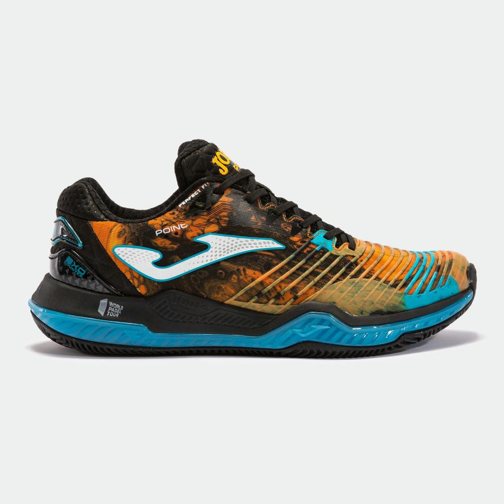 Chaussures de padel pour hommes. Conçues exclusivement par Joma pour le tournoi Master Final WPT. Avec un design spectaculaire dans les tons orange et bleu, vous êtes accompagné par le meilleur de l'amorti, de la stabilité et de la réactivité.