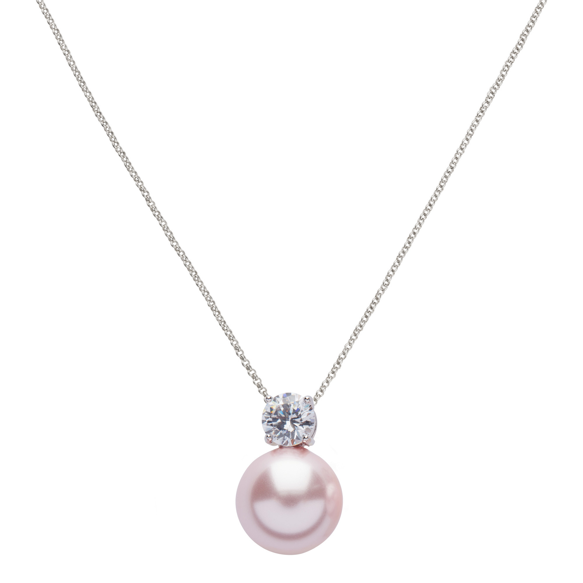 Information sur l'offre : Collier en métal argenté avec pendantif avec une perle de verre rose et un cristal blanc. Longueur: 38 + 5 cm. Fermoir mousqueton. Plaque personnalisée avec logo. Garantie de 2 ans. Le produit est livré dans un boite avec logo.
