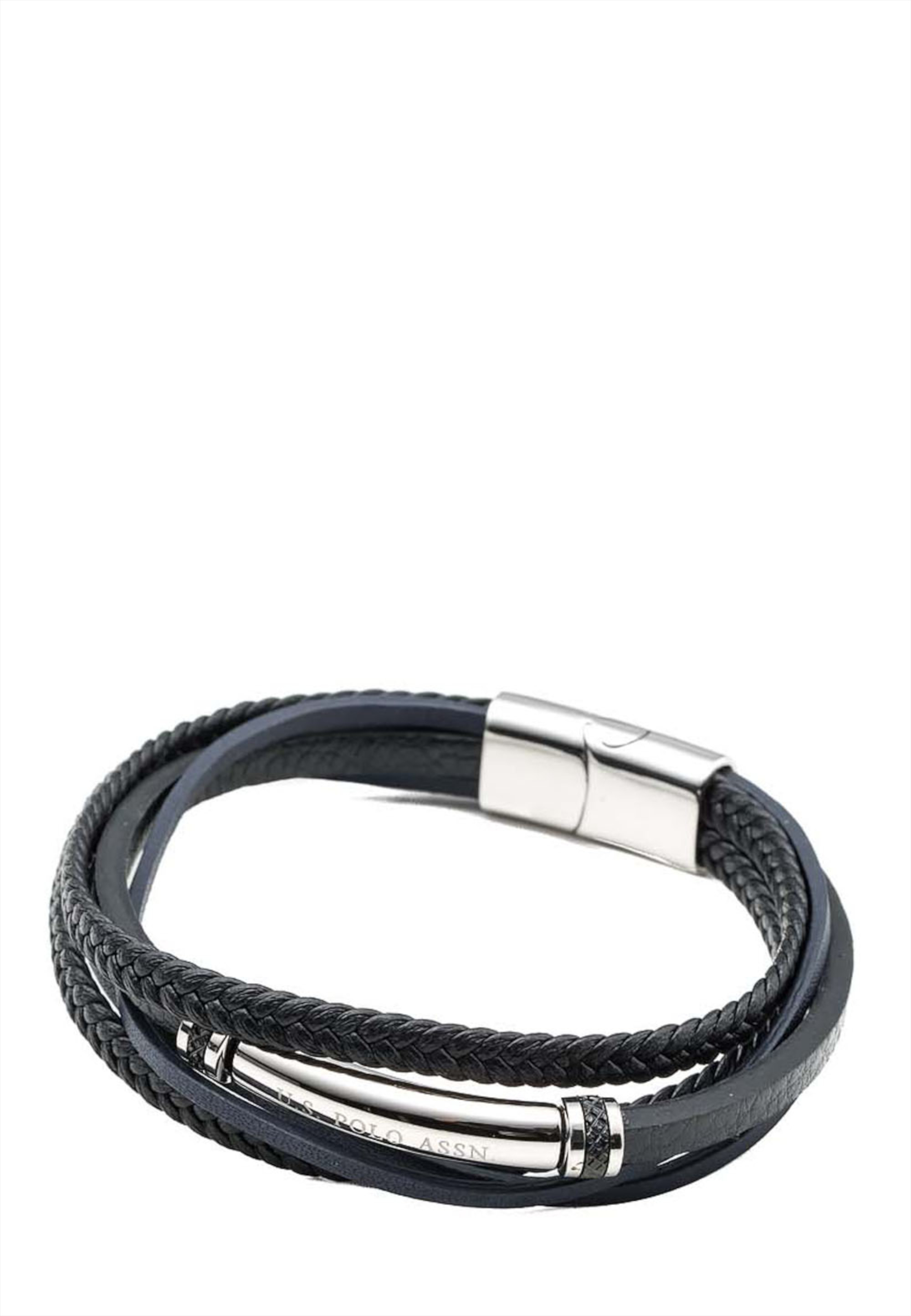 Pulsera U.S. Polo Assn. de cuero negro y azul