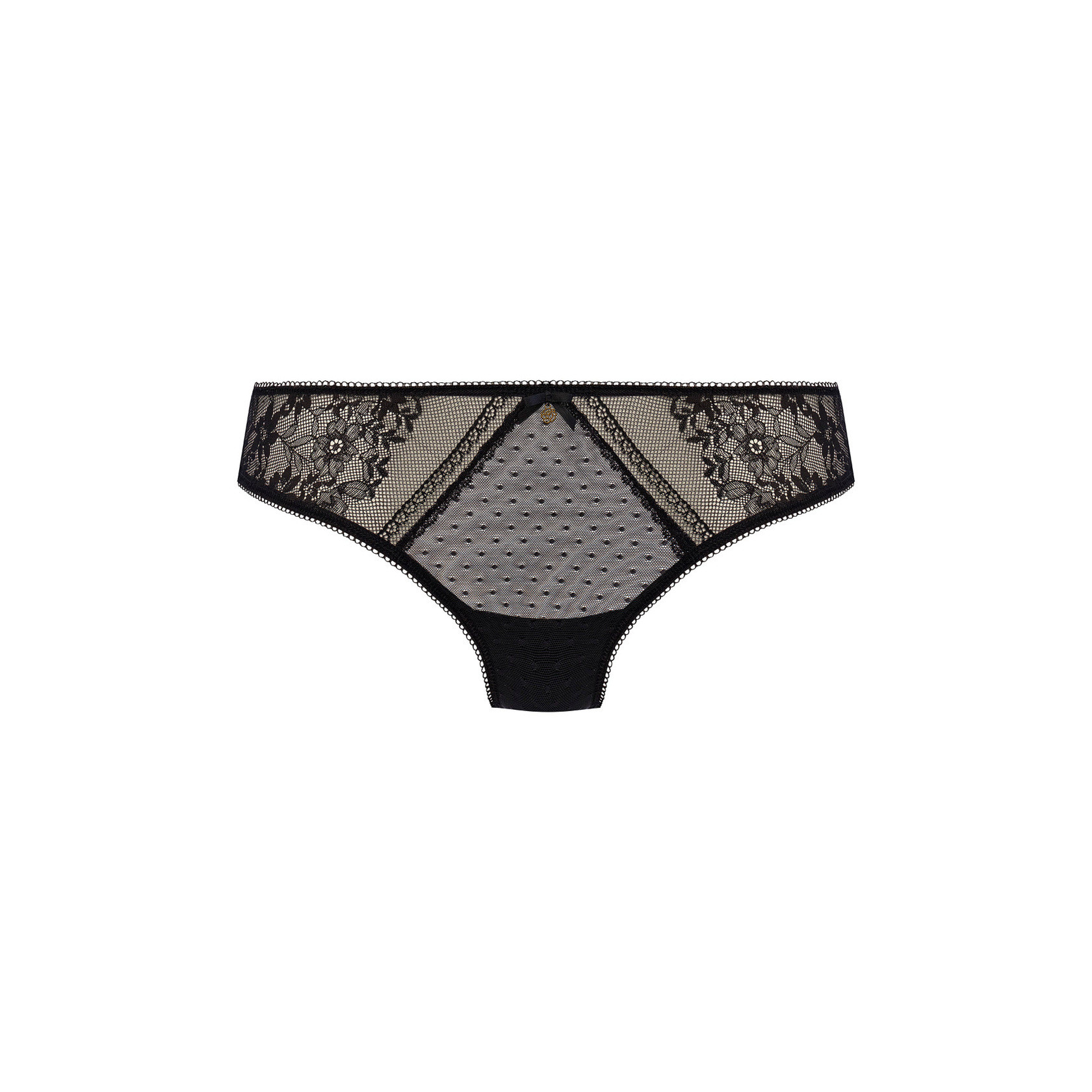Découvrez notre nouveauté la plus attendue de la saison : la collection Sydnie. Agrémentée d’une délicate dentelle florale accompagnée de tulle à pois, notre lingerie noire crée un effet dramatique à porter de jour comme de nuit ! - Tulle à pois - Jolie dentelle florale stretch et festonnée sur les panneaux latéraux à l’avant. Bords festonnés au dos des jambes pour un look lisse et une invisibilité totale sous les vêtements - Détail nœud et décor floral à l’entre-seins