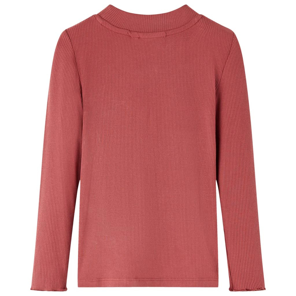 T-shirt enfants manches longues faux col roulé rouge brûlé 140