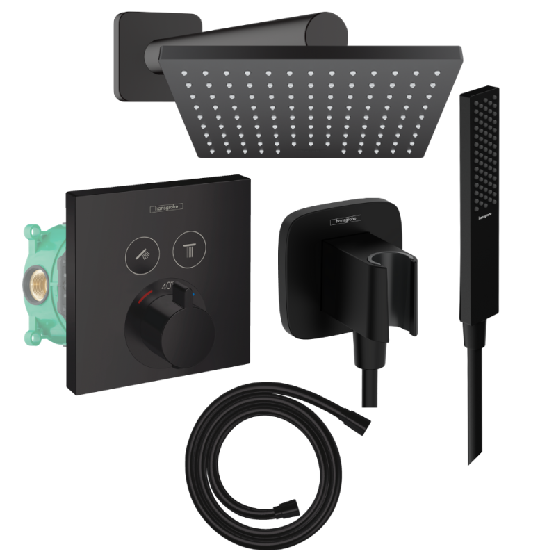 Les avantages de la colonne de douche encastrée thermostatique HANSGROHE ShowerSelect E Douche de tête Vernis Shape Flexible Isiflex Douchette Pulsify E Noir mat