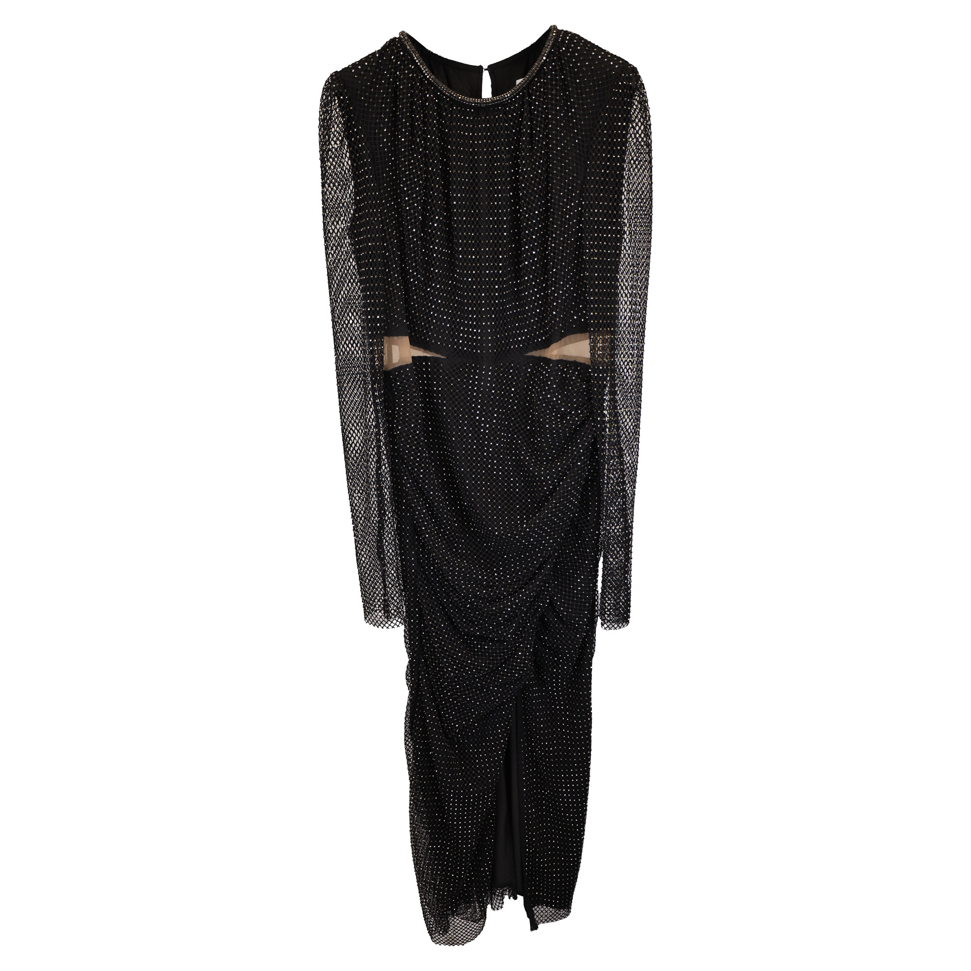 Robe mi-longue à manches longues et découpes en maille diamantée Self-Portrait en polyester noir