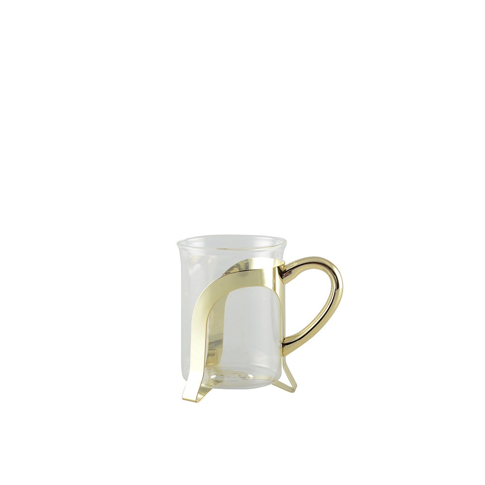 Tasses à café en verre avec déco en métal doré - lot de 2