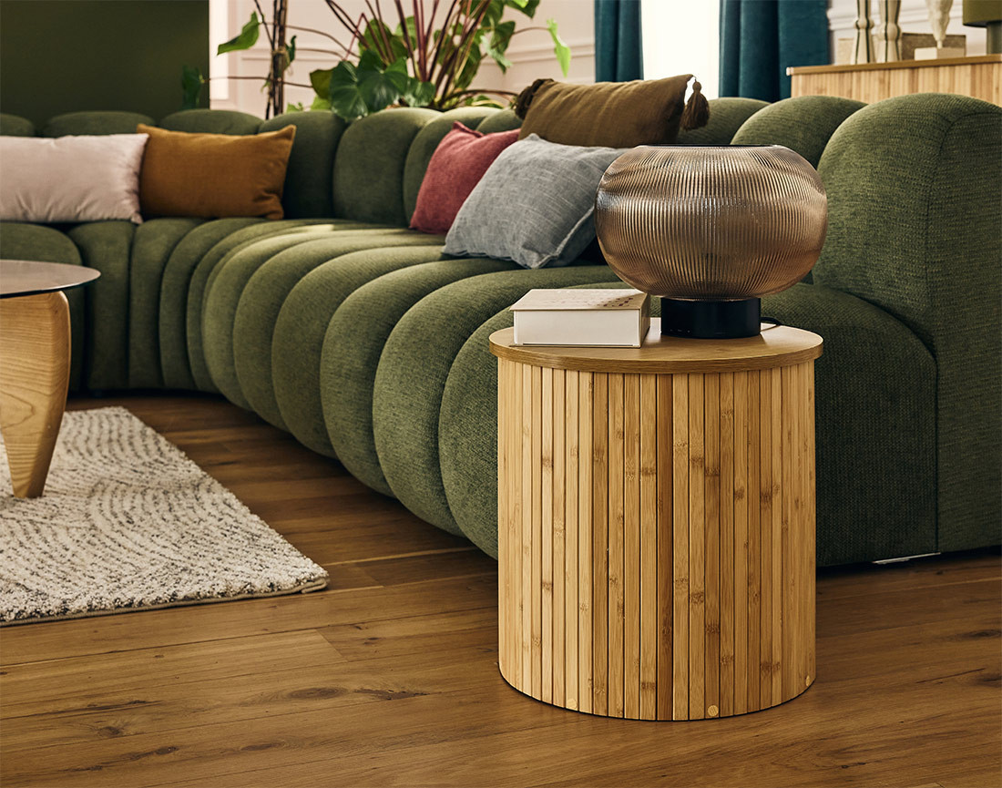 Le meuble Kofu est un élément de décoration à part entière. En bambou naturel, il apporte une touche organique à votre intérieur. Solide et résistant, il confère une touche chaleureuse à votre espace de vie. Il est léger et facile à manipuler avec ses 40 cm de diamètre. L’aspect naturel du bambou se marie parfaitement avec d’autres matériaux, comme le bois, le métal ou le tissu, ce qui le rend aisé à intégrer dans n’importe quel environnement. Le montage du bout de canapé Kofu est simple et rapide ; vous pouvez en profiter dès réception du colis.