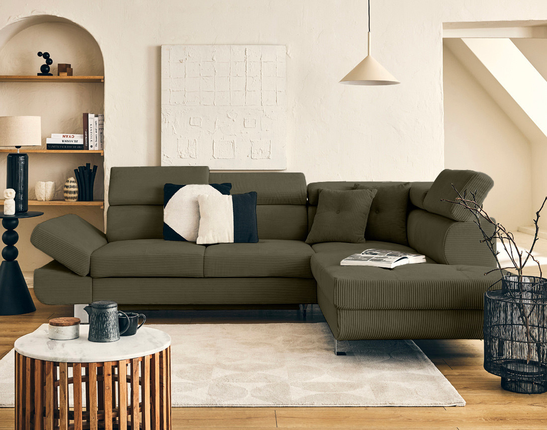 Lisbona : Un canapé d’angle droit en velours côtelé