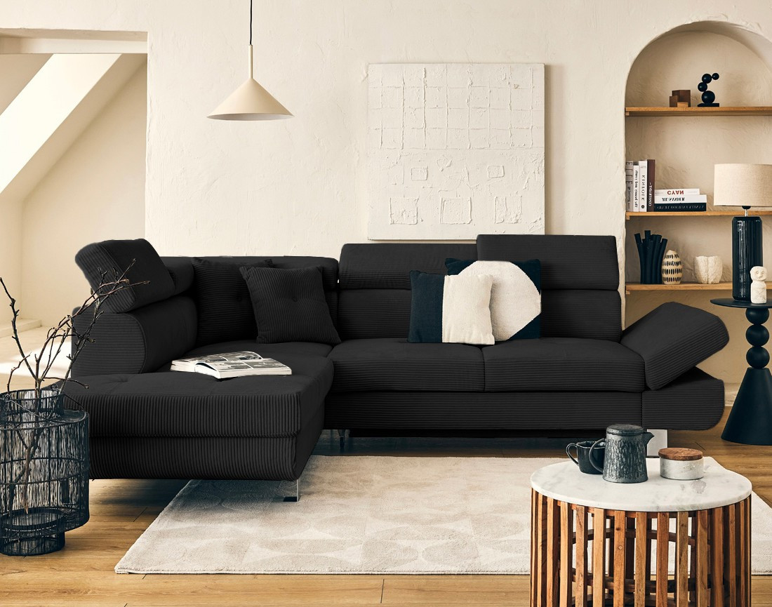 Lisbona - canapé d'angle gauche 5 places convertible avec têtières en velours côtelé