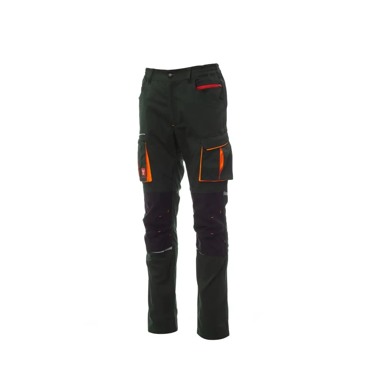 Pantalon unisexe, stretch, multi-saison, à élastiques latéraux et passants à la taille, fermeture à zip et bouton personnalisé. Doté sur le devant de deux poches profilées, une petite poche porte-monnaie à droite, une petite poche de sécurité fermée par zip à gauche. L'avant de la jambe gauche comporte une poche à soufflet avec rabat fermé par velcro et un porte-badge. L'avant de la jambe droite comporte : une poche porte-téléphone à liseré rétroréfléchissant et une poche à soufflet. Les deux jambes sont dotées de porte-genouillères en nylon Oxford 500D, (à ouverture par le bas) et d'inserts rétroréfléchissants indiquant l'ouverture. L'arrière comporte : une poche à rabat fermée par velcro et une poche sans rabat pourvue de 2 bandes rétroréfléchissantes, une poche porte-mètre (jambe droite), des inserts rétroréfléchissants au niveau du genou (sur les deux jambes), talonnette en tissu en contraste (sur les deux jambes). Le vêtement est également doté de : - coutures à triple aiguilles sur l'entrejambe, l'intérieur et l'extérieur jambe - baguettes de renfort en contraste en plusieurs points. Les tailles (italiennes) centrales 48-50-52 ont un intérieur jambe habituel de 82 cm. - Composition: 50% POLYESTER 30% COTON 20% ÉLASTOMULTIESTER (M.) - Aspect: TWILL STRETCH - Poids: 260 GR/MQ - Emballage: 1/20