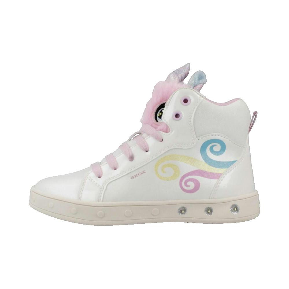 Les Baskets J Skylin A de Geox sont des chaussures lifestyle pour filles juniors. Elles sont conçues avec un dessus en cuir synthétique et une doublure en textile, offrant confort et maintien. Ces baskets semi-montantes sont légères et respirantes, avec des détails en fausse fourrure et des lumières intégrées dans la semelle extérieure pour un style ludique. Elles conviennent parfaitement pour l'école, les sorties ou les activités sportives. La fermeture combine velcro et lacets pour un ajustement facile et un maintien optimal.
