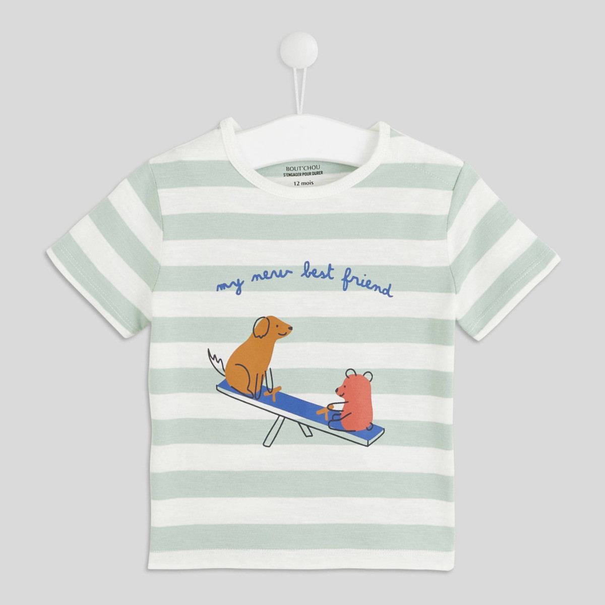 - T-shirt rayée imprimé animaux en coton BIO