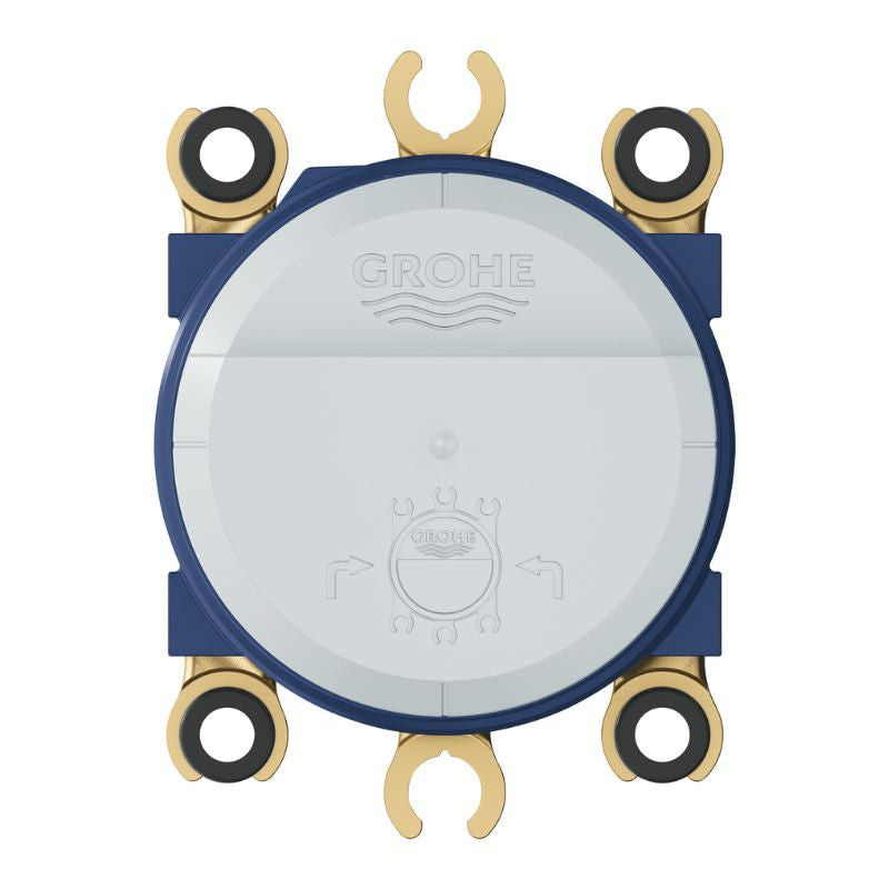 Pour sets de douches de tête : 26475 / 26477 / 26479 / 26481 Unité de raccordement en laiton Corps encastré stable et protection Boîtier étanche Joint d'étanchéité Kit de rinçage intégré GROHE Économie d’eau débit limité 8 l/min sur chaque sortie