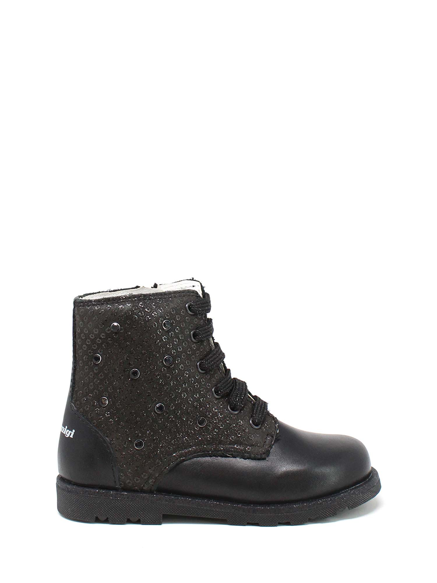 Description : bottine en cuir souple avec pierres décoratives appliquées.