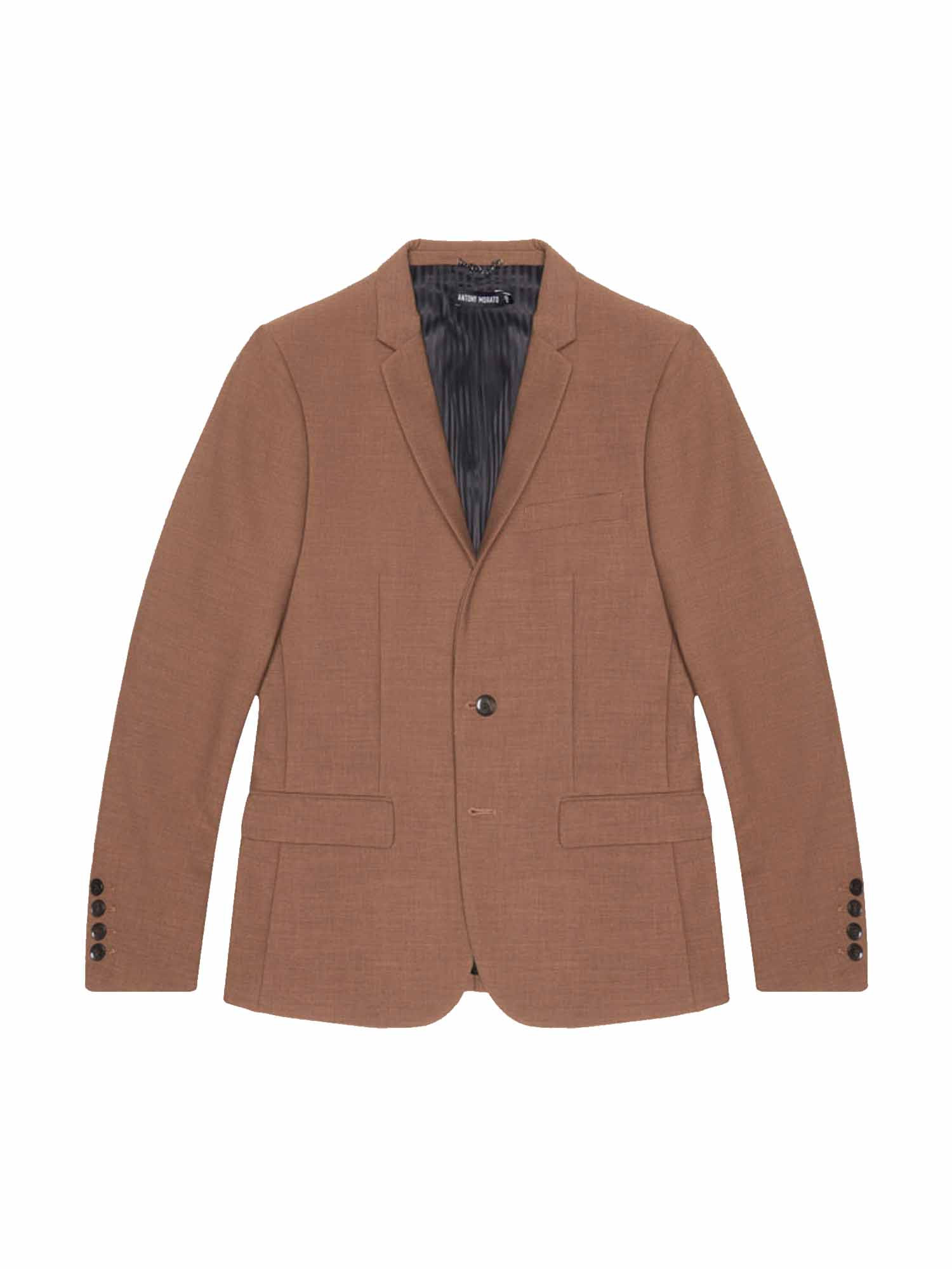 Description : veste droite à deux boutons, avec une coupe ajustée et un revers classique sur le devant.