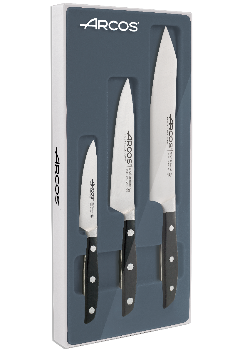 Arcos Jeu de Couteaux de Cuisine Forgés 3 Pièces - Éplucheur. Couteau Chef. Couteau Santoku en Acier Inoxydable avec Manche Ergonomique en Polypropylè