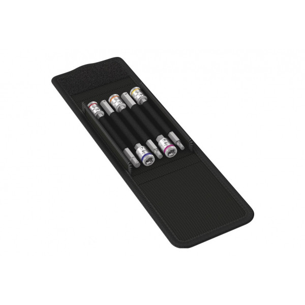 Sangle porte-outils en textile très résistant et design Wera, avec 9 douille-embouts, sur un espace réduit. Le mécanisme « Twist to Unlock », très souple, assure un maintien en toute sécurité et un retrait facile des douilles. Avec le système « Take it easy » une couleur = une dimension afin de trouver très facilement l’outil nécessaire. Un mousqueton permet la fixation au passant de ceinture ou à une sacoche. Douille-embouts particulièrement courtes et robustes présentant tous les avantages de la technologie Wera. Embout-douille à fonction de retenue pour un vissage simple sans risque de perdre la vis lors du montage. Verso en scratch pour une fixation simple, au mur, à l’étagère, à la servante d’atelier ou au système de transport d’outils Wera 2go.