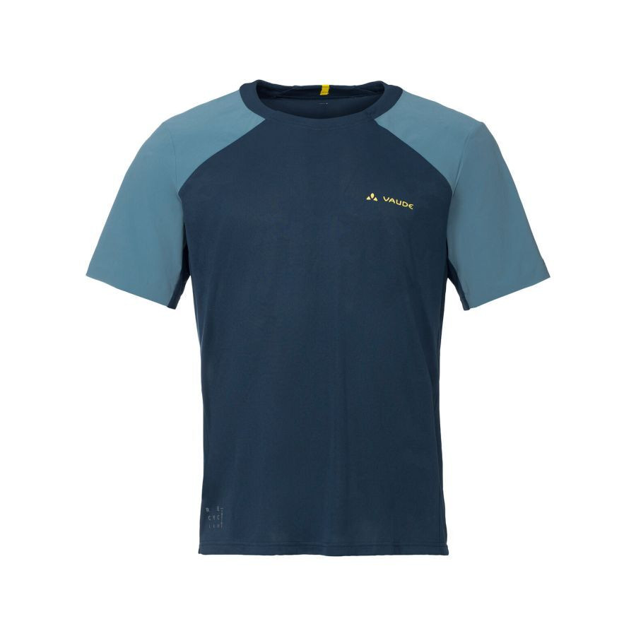 En descente, flow ou bike park, le maillot Moab Pro Shirt est de toutes les actions. Le mélange de matières malin du maillot à manches courtes technique pour homme garantit une fonctionnalité complète. Les épaules et les manches sont confectionnées dans un polyamide recyclé très résistant. La matière jacquard douce en polyester recyclé à l'avant et les découpes au laser sous les bras assurent en permanence une ventilation optimale. Le t-shirt VTT est de coupe allongée à l'arrière et présente un col rond agréablement doux. Le matériau très léger et respirant en polyamide du maillot homme est obtenu à travers une méthode certifiée du bilan massique. De l'huile de pyrolyse qui entre dans la fabrication du polyamide conventionnel est obtenue à partir de pneus usagés. Le recyclage chimique permet de réduire les émissions de CO2 de 60%. Le maillot Moab Pro se porte le mieux assorti au short Moab Pro. Le label Green Shape de VAUDE garantit un produit écologique, fonctionnel et fabriqué dans des matériaux durables certifiés bluesign®. Caractéristiques T-shirt hybride et technique pour homme avec zones coupe-vent et respirantes élastique et à séchage rapide climatiquement neutre ; fabrication écologique en matériaux principalement recyclés Composition Tissu principal : 100% Polyester (recyclé), Manches : 84% Polyamide, 16% Elasthanne Plus produit matière stretch au niveau des épaules et des manches orifices de ventilation au laser décolleté rond colourblock matière stretch au niveau des épaules et des manches, orifices de ventilation au laser, décolleté rond, colourblock Aucun nettoyage chimique; Lavage délicat en machine à 30°C; Ne pas javelliser; Ne pas sécher en machine; Repasser à froid