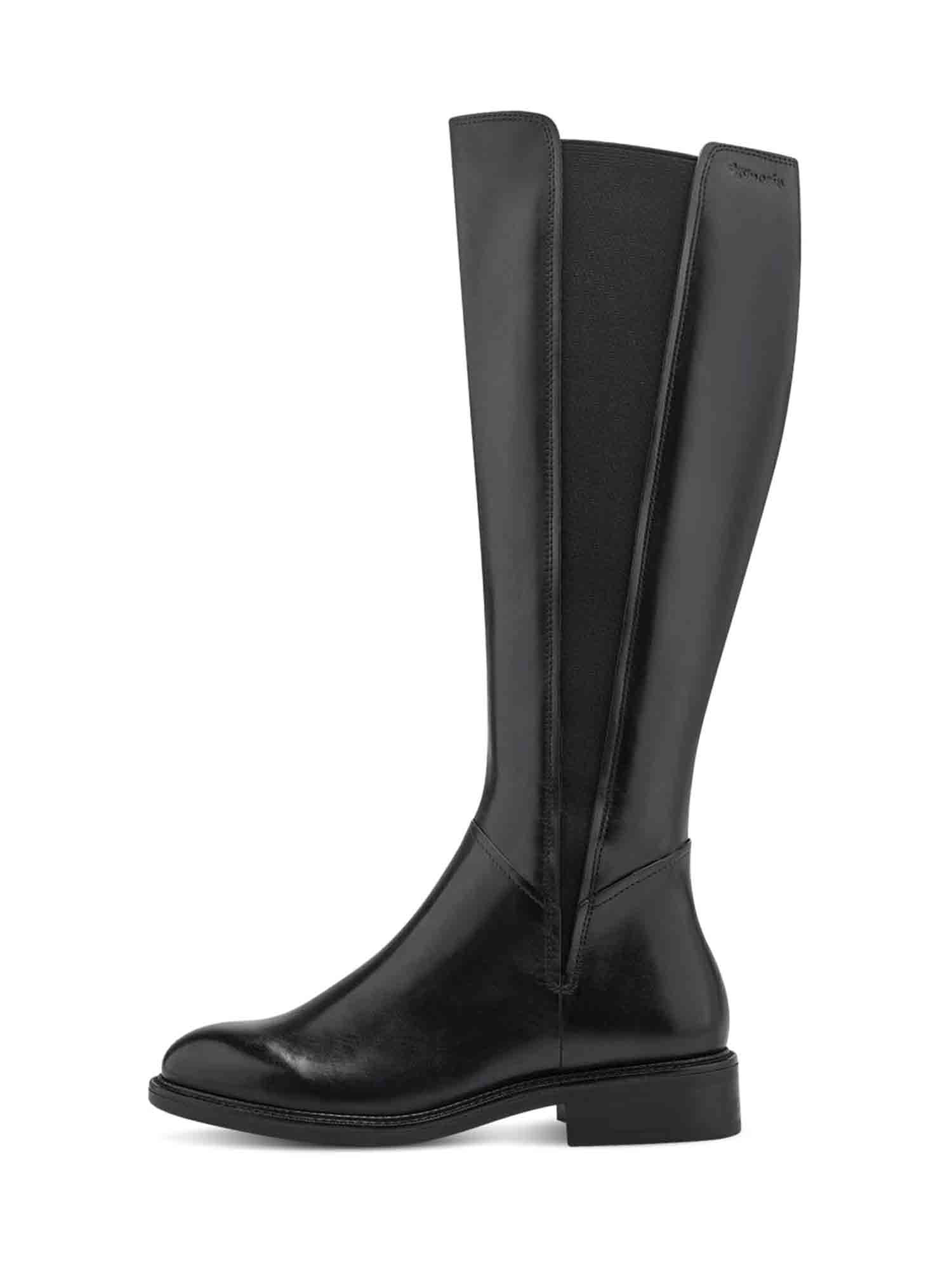 Description : botte pour femme à talon bas, proposée ici dans une variante noire audacieuse au charme intemporel, adaptée à différents looks.