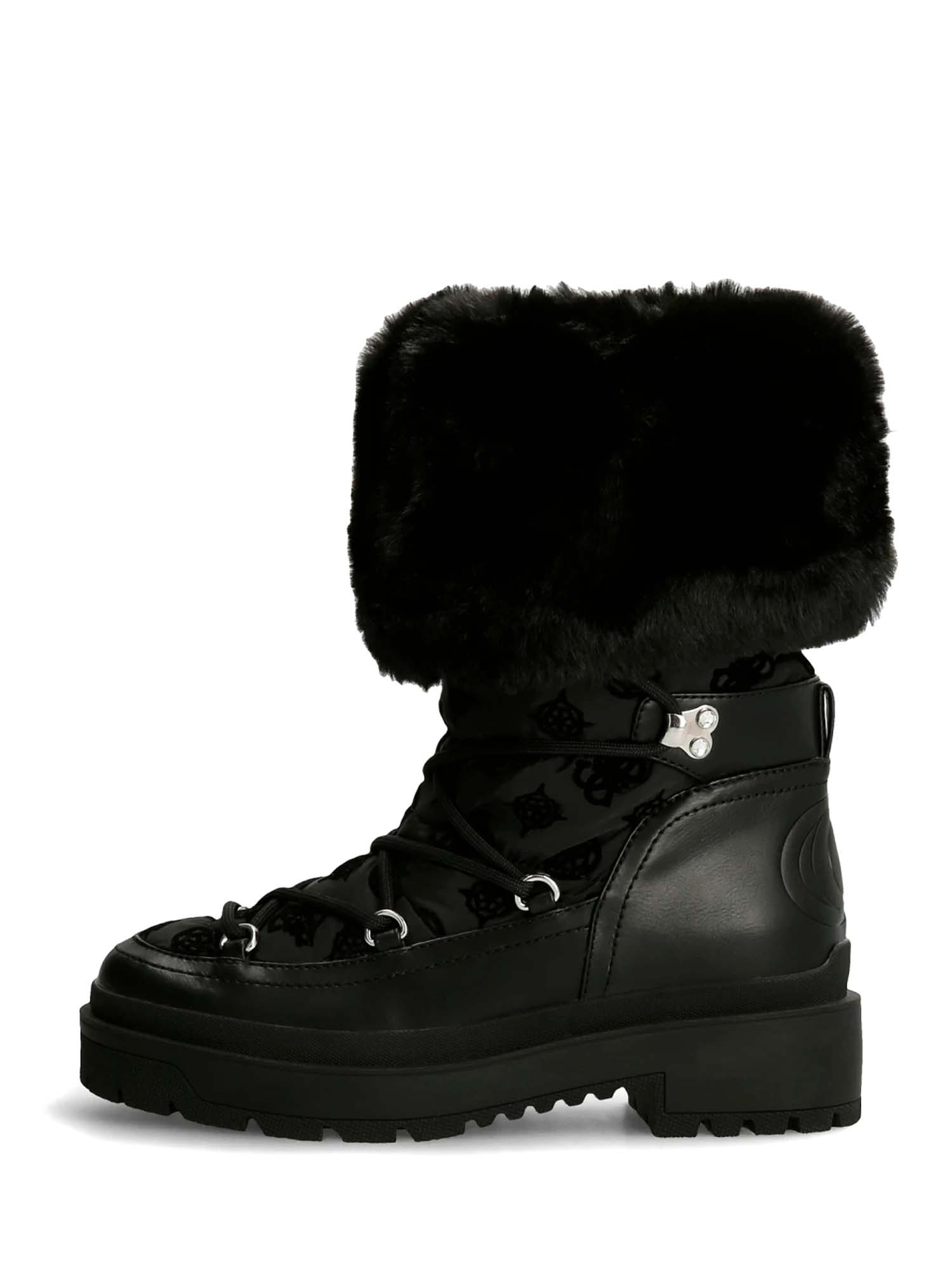Description : bottine de couleur unie en matière synthétique avec insert en fausse fourrure.