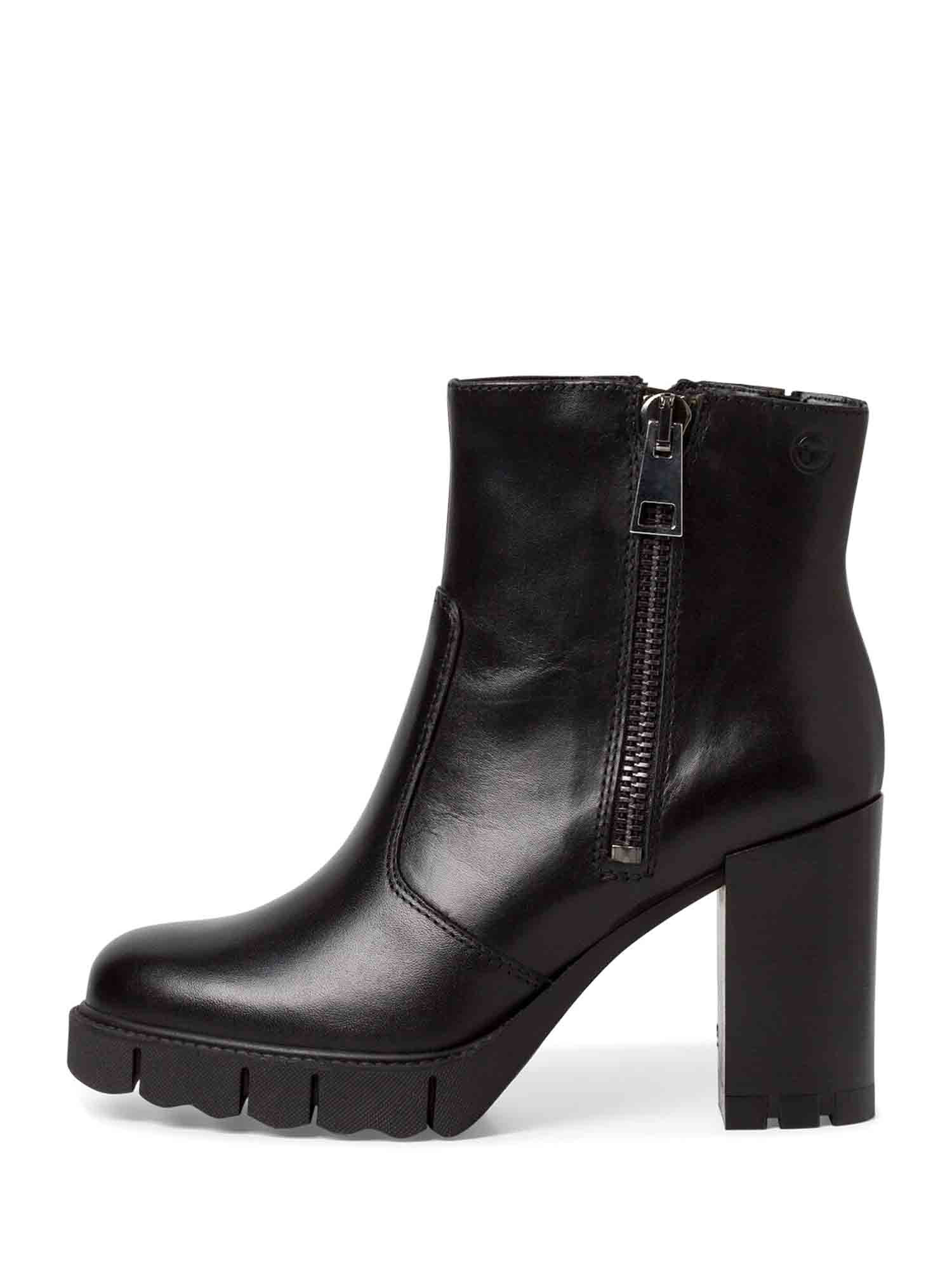 Facile à enfiler grâce à la fermeture zippée, il est proposé ici dans un élégant cuir noir lisse à l'allure agréablement audacieuse.
