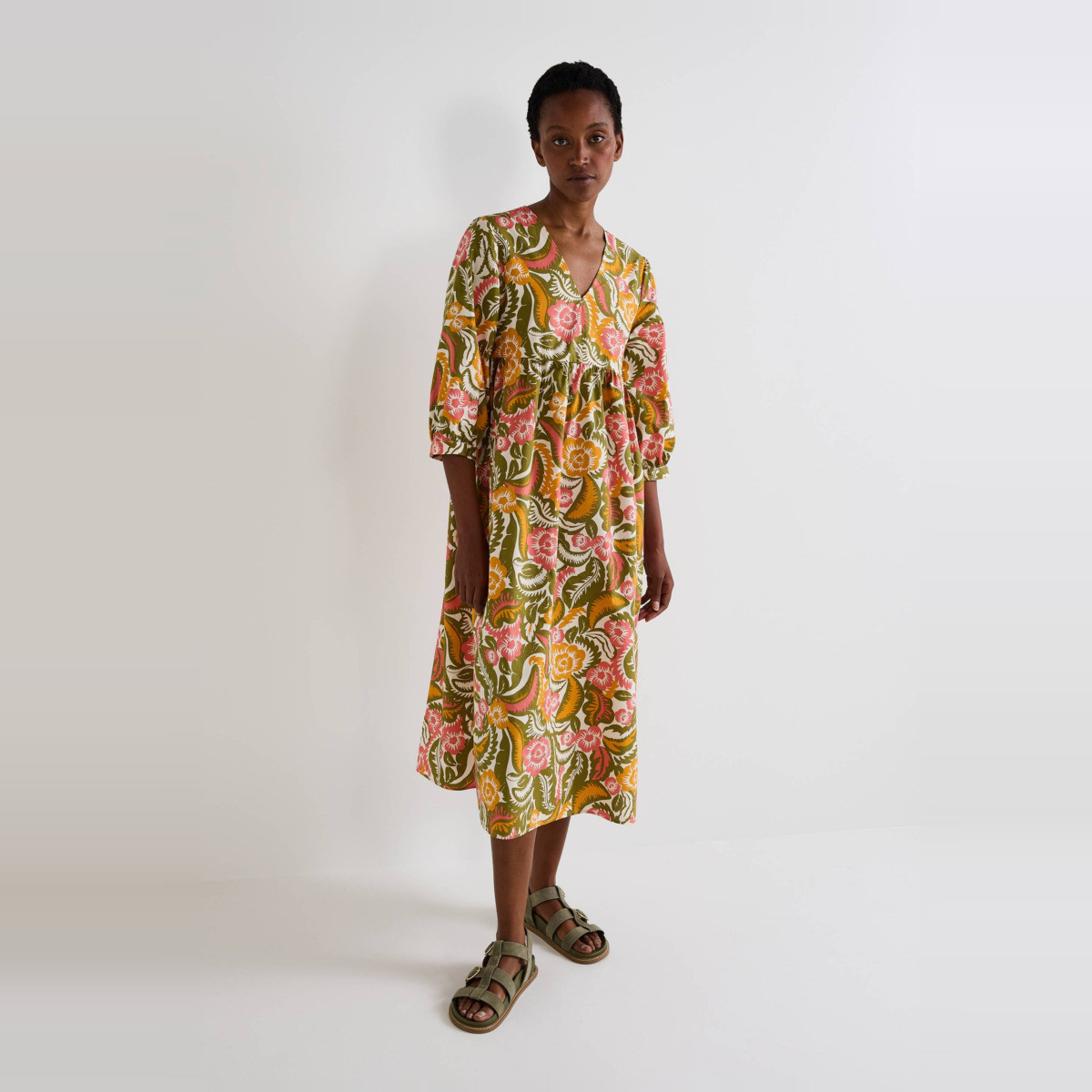 Robe manches trois quarts imprimée en coton - MONOPRIX