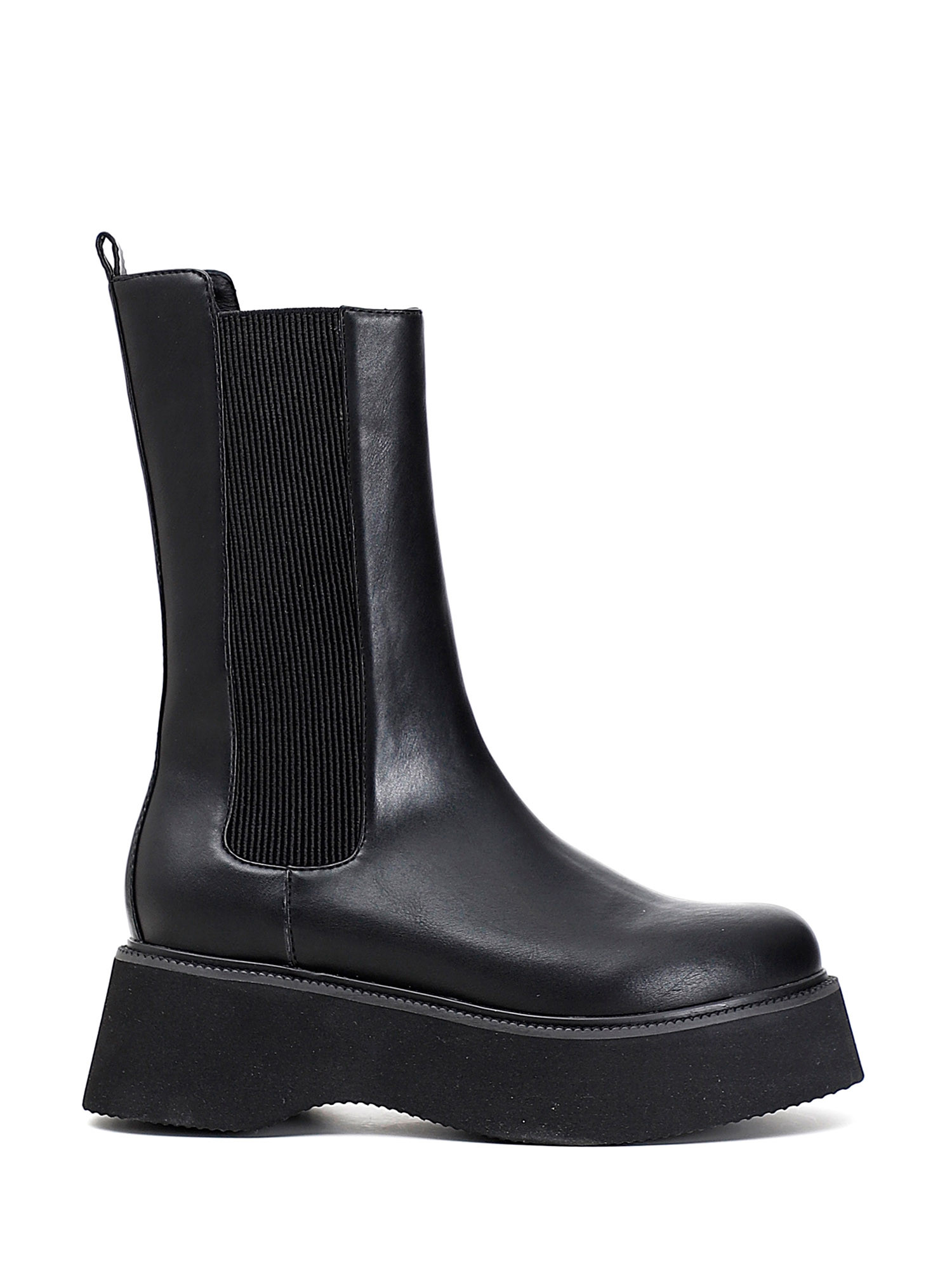Description : bottines en éco-cuir sur semelle monobloc effet compensé ultralégère.