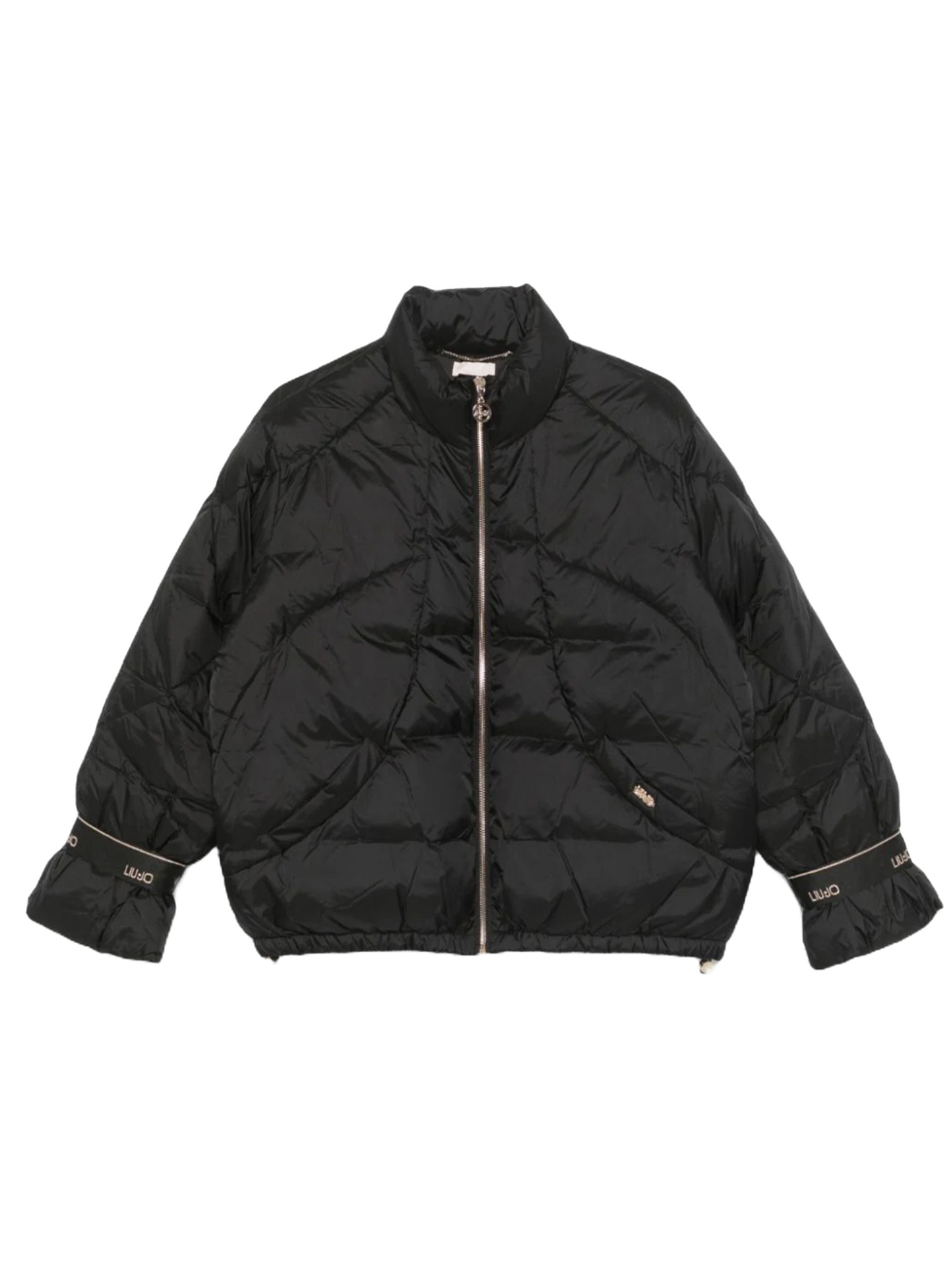 Rembourrage en duvet, col montant, ruban logo en gros-grain aux poignets.