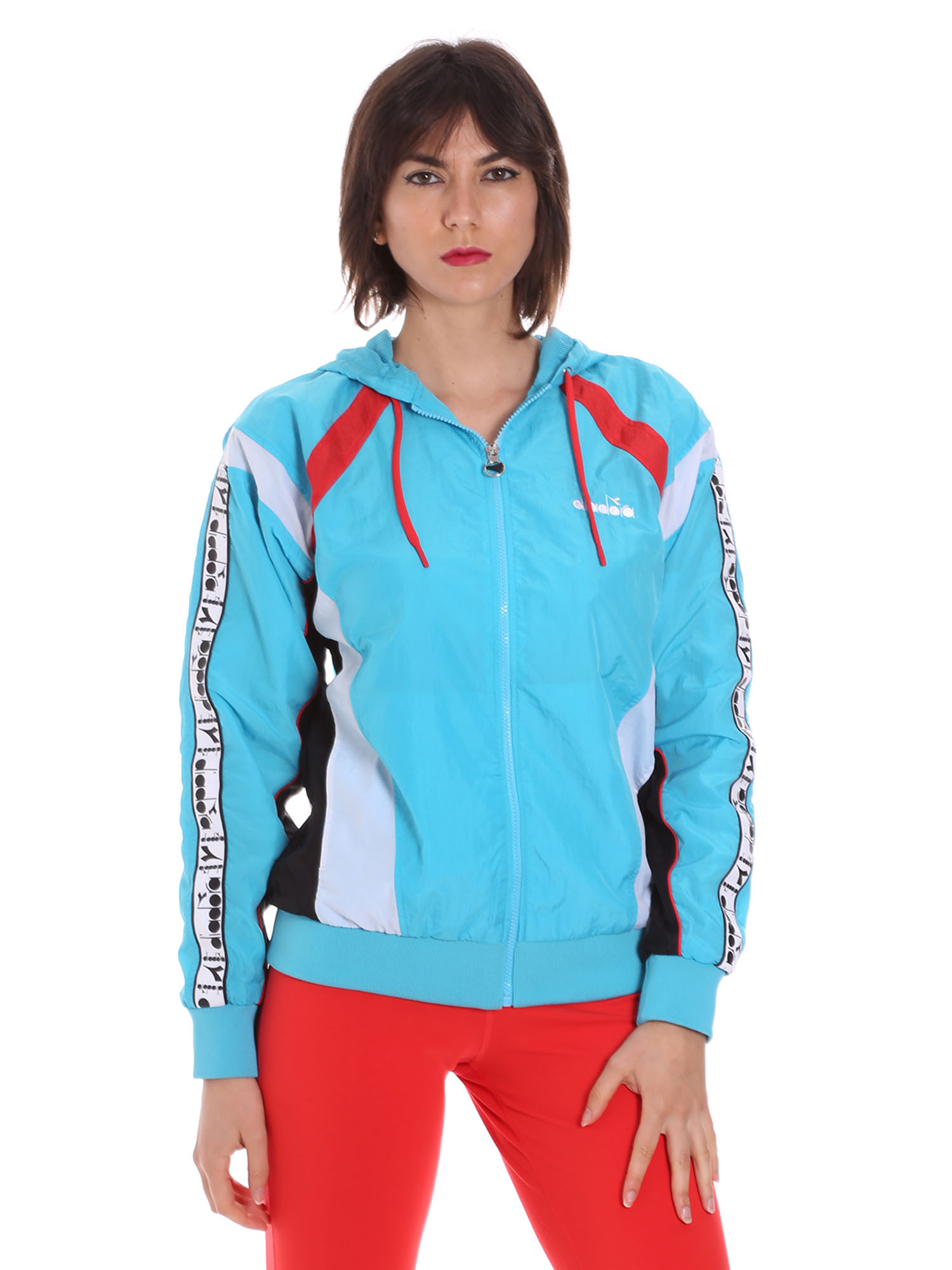 Fabriqué en nylon taslan, entièrement doublé en mesh, avec bas côtelé et bande logo diadora sur les manches.