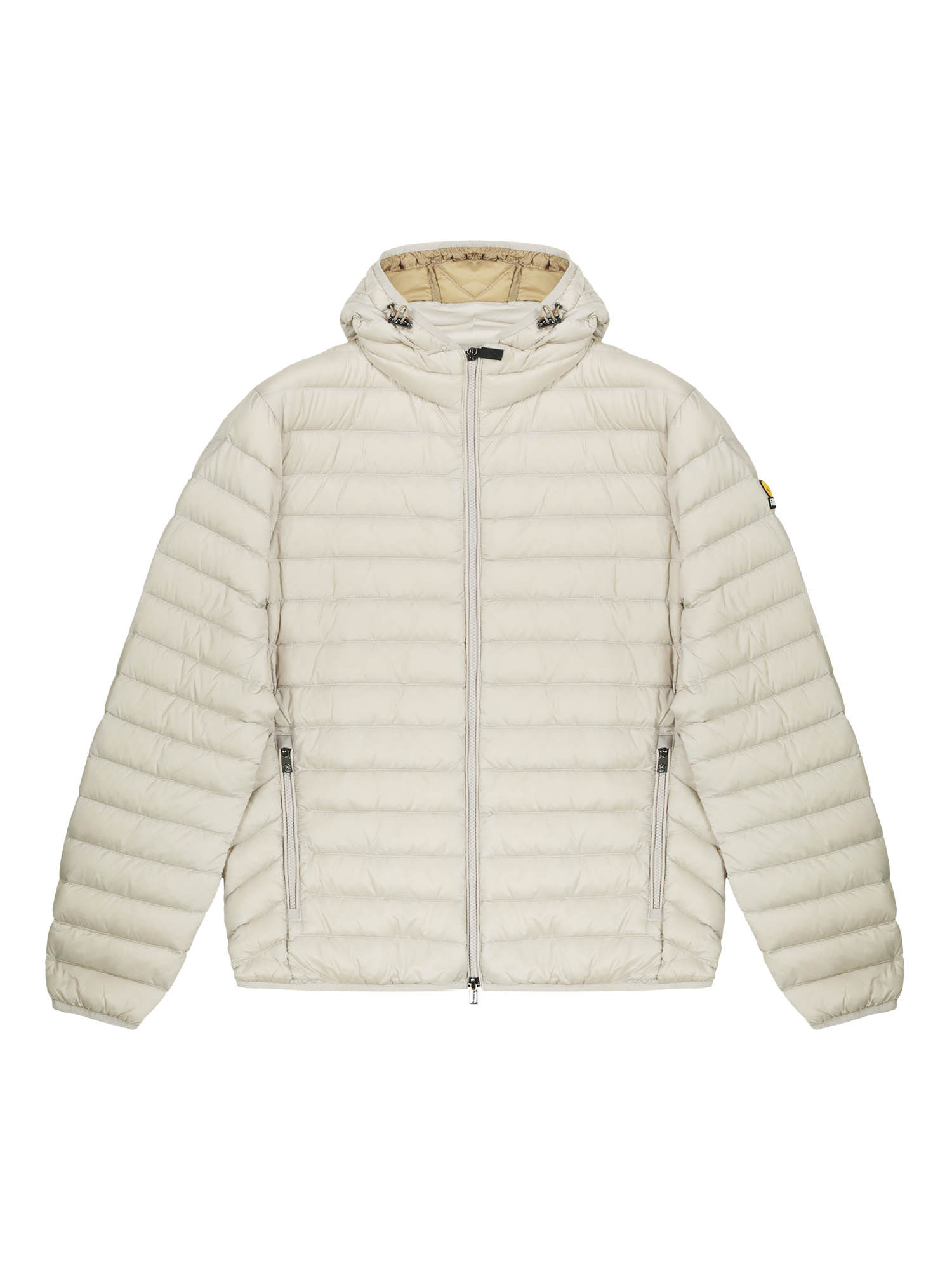 La doudoune se caractérise par une double fermeture à curseur métallique, des fermetures éclair assorties, un élastique en Lycra aux poignets et le logo institutionnel Ciesse Piumini.