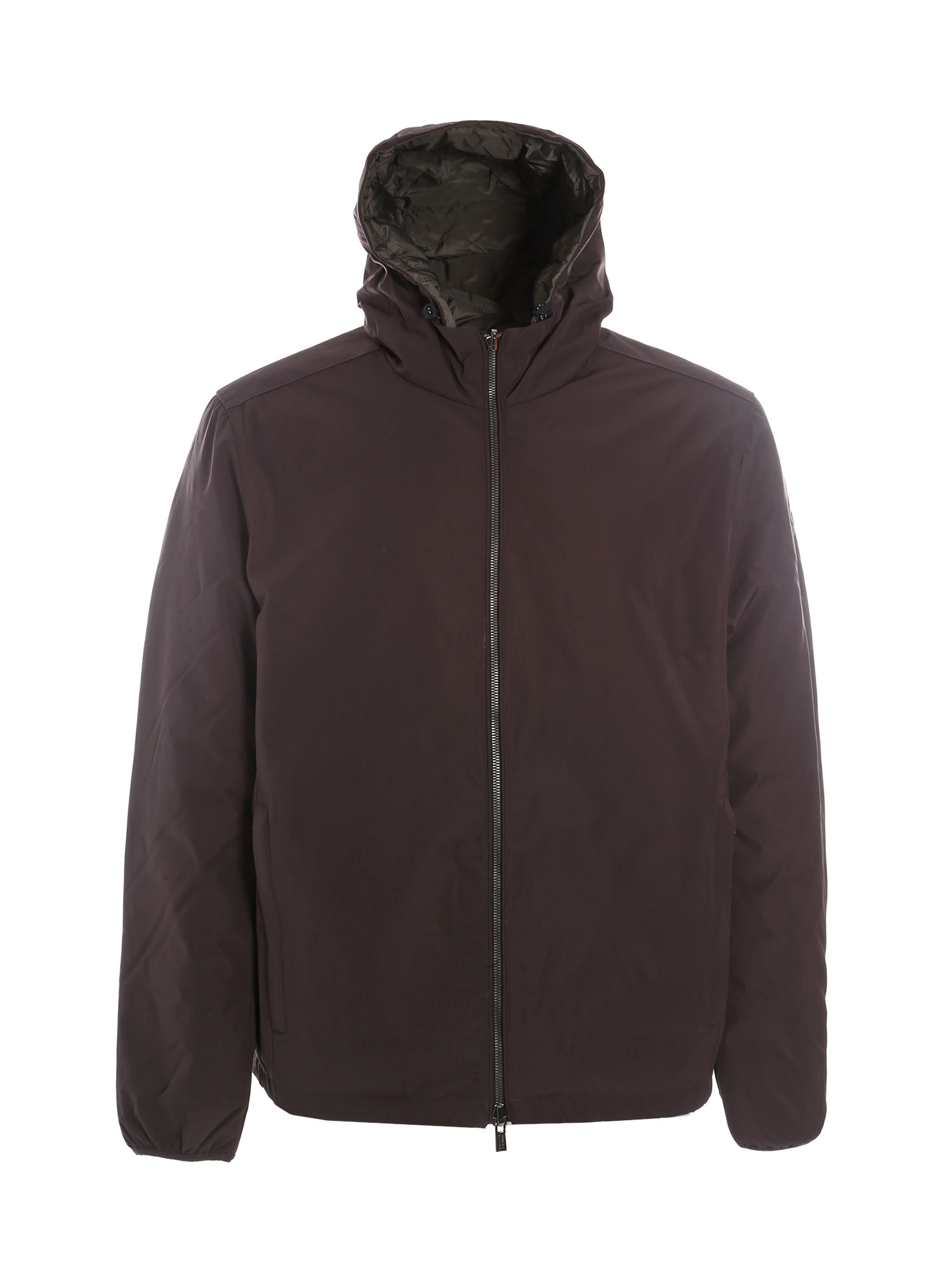 Description : doudoune réversible noire et jaune, réalisée en tissu poly taslan et rembourrée de duvet véritable certifié au pouvoir gonflant 800.