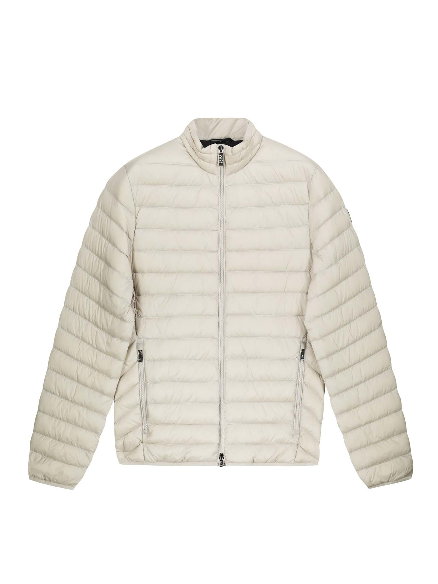 Description : doudoune sans capuche, réalisée en tissu nylon cirè à effet semi-opaque et rembourrée de duvet véritable certifié au pouvoir gonflant 800.
