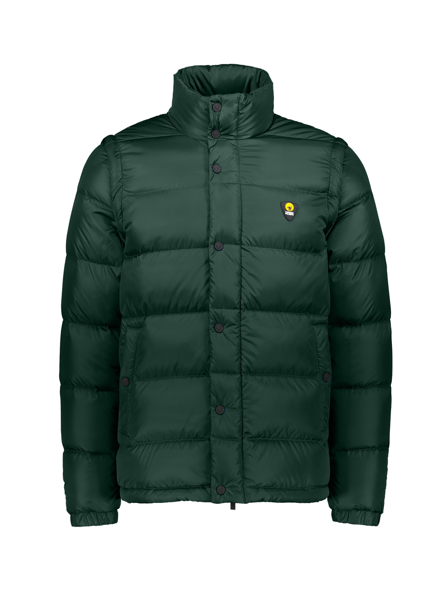 Le vêtement a des manches amovibles avec zip et se transforme en gilet.