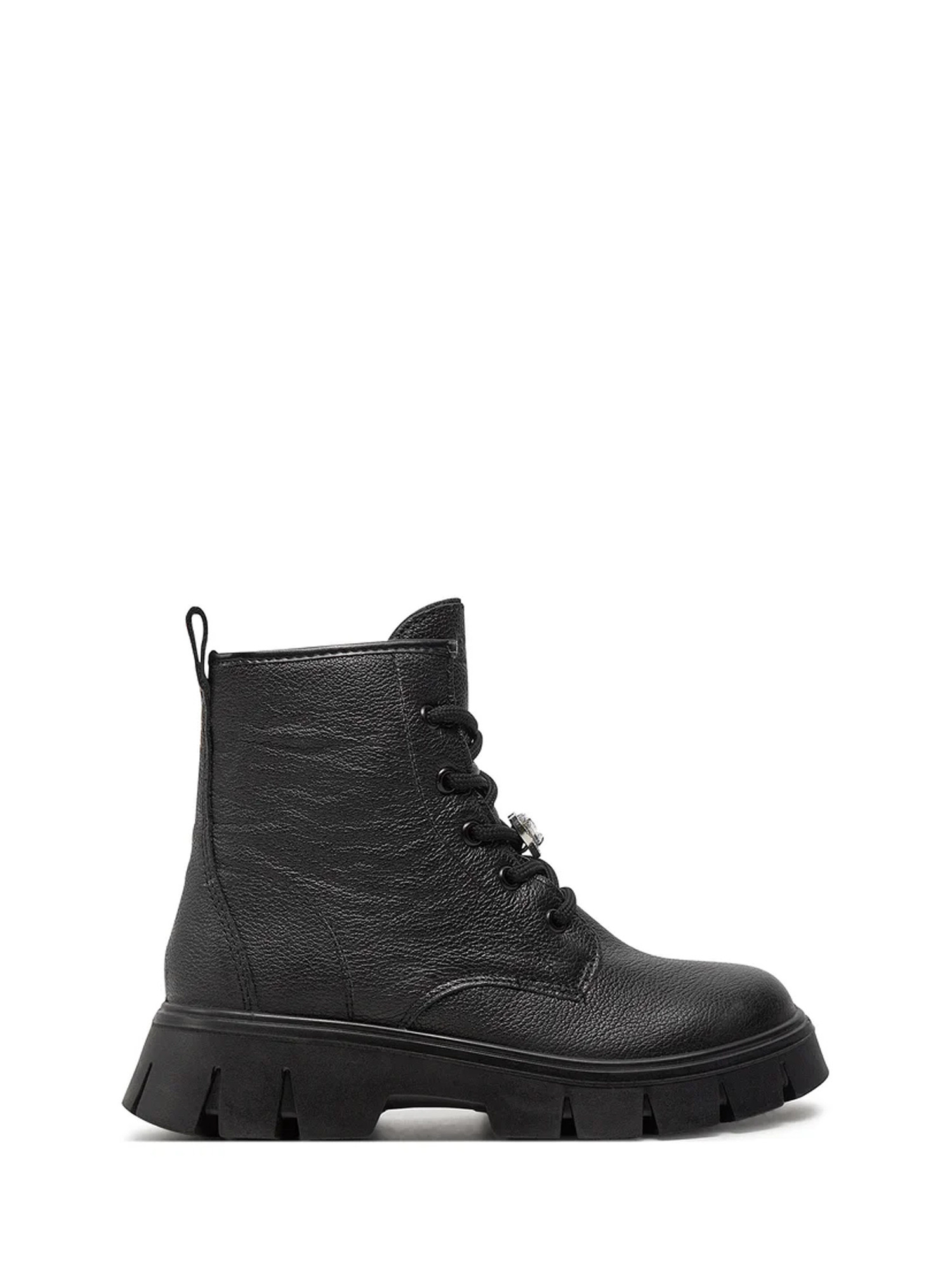 Description : des bottes de combat en cuir qui ajoutent une note audacieuse aux tenues du quotidien.