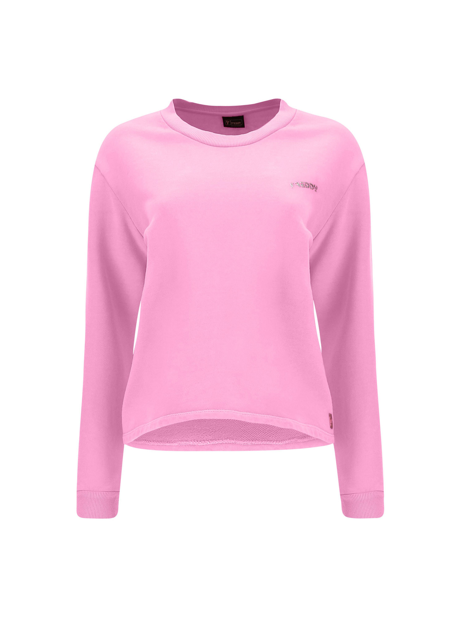 Description: T-shirt court en molleton léger fluo teint en pièce avec encolure ronde et manches longues.
