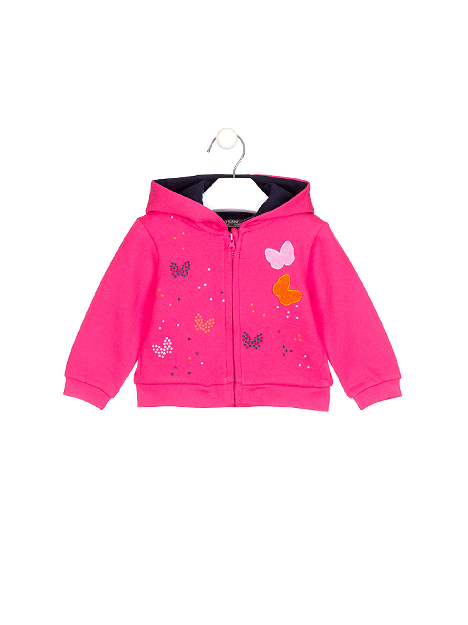 Veste sweat avec applications imprimées et papillons sur le devant.