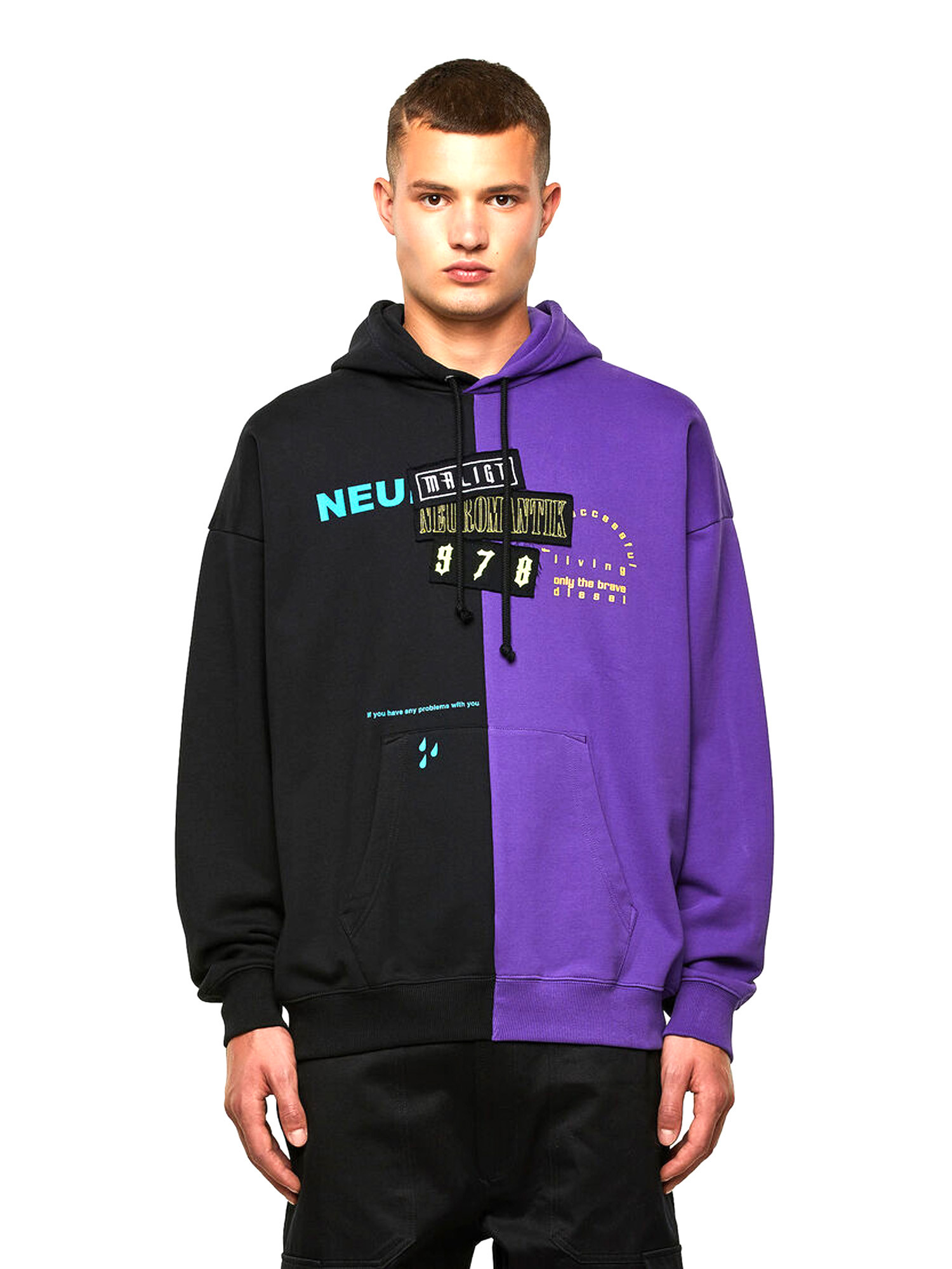 Description: Sweat-shirt à capuche color block en jersey de coton bouclé avec un collage de logos, graphiques et slogans imprimés.
