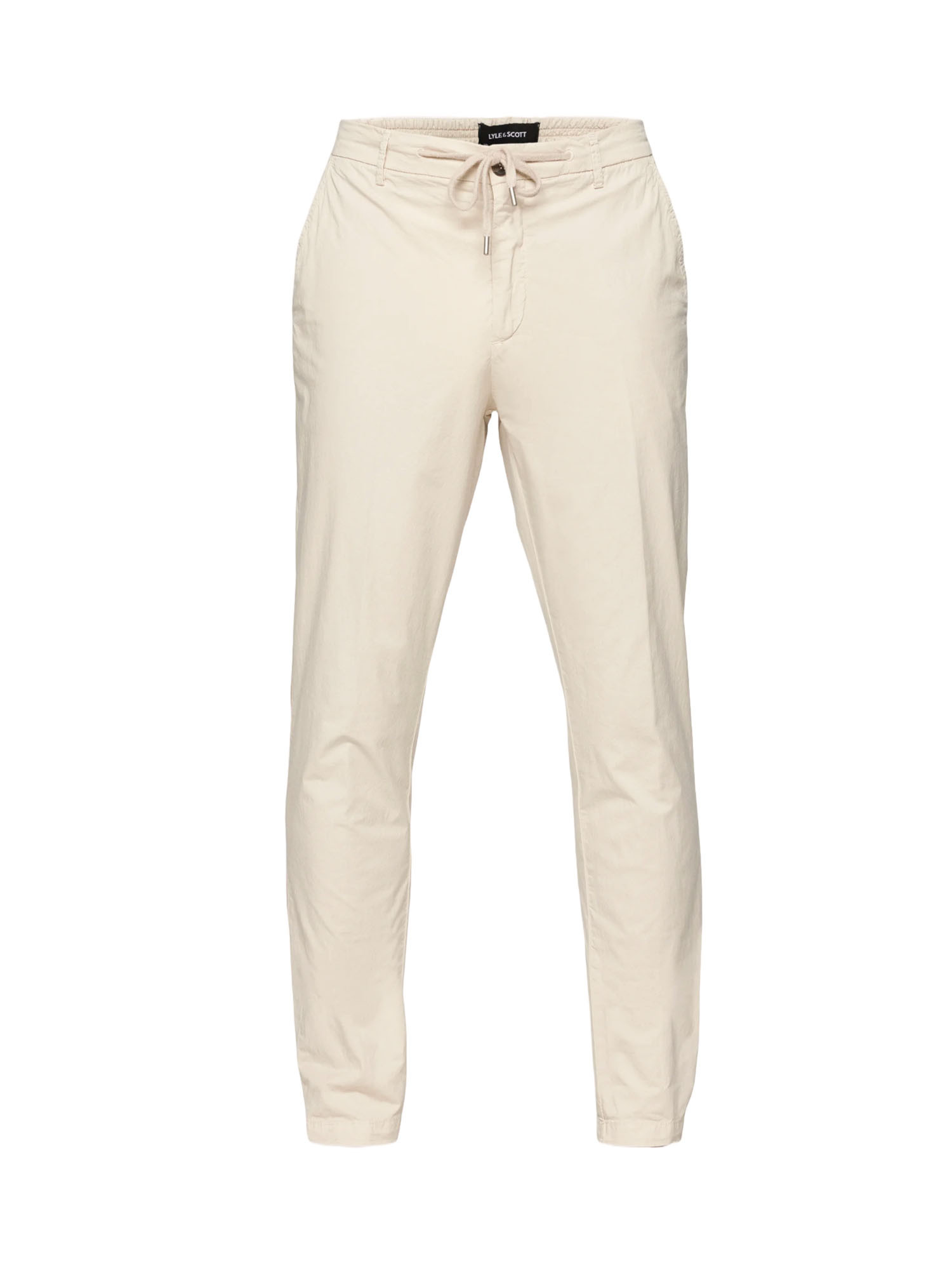 Taille élastique avec cordon de serrage, fermeture éclair et bouton.
