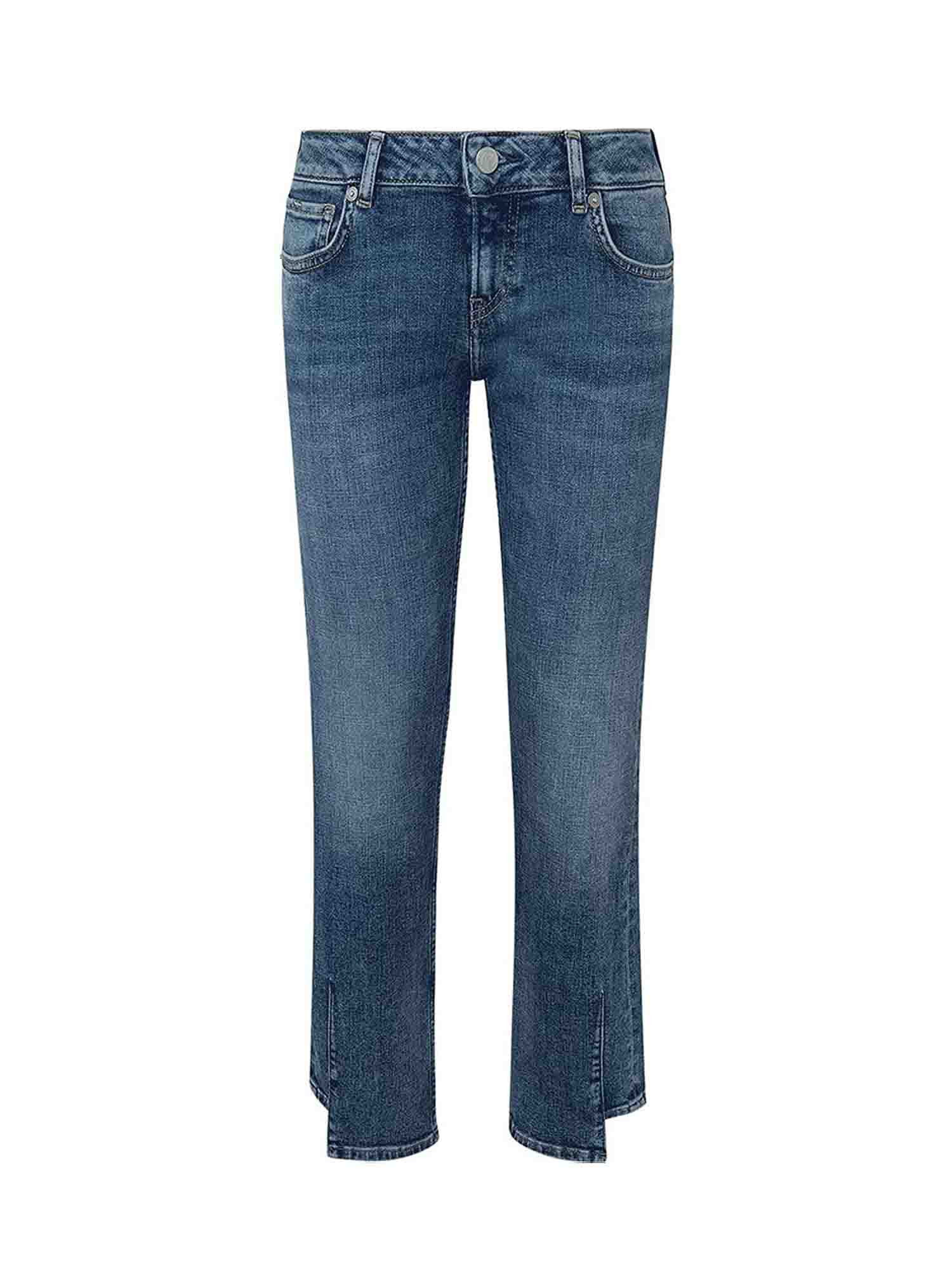 Description : jean légèrement stretch, délavage moyen foncé.
