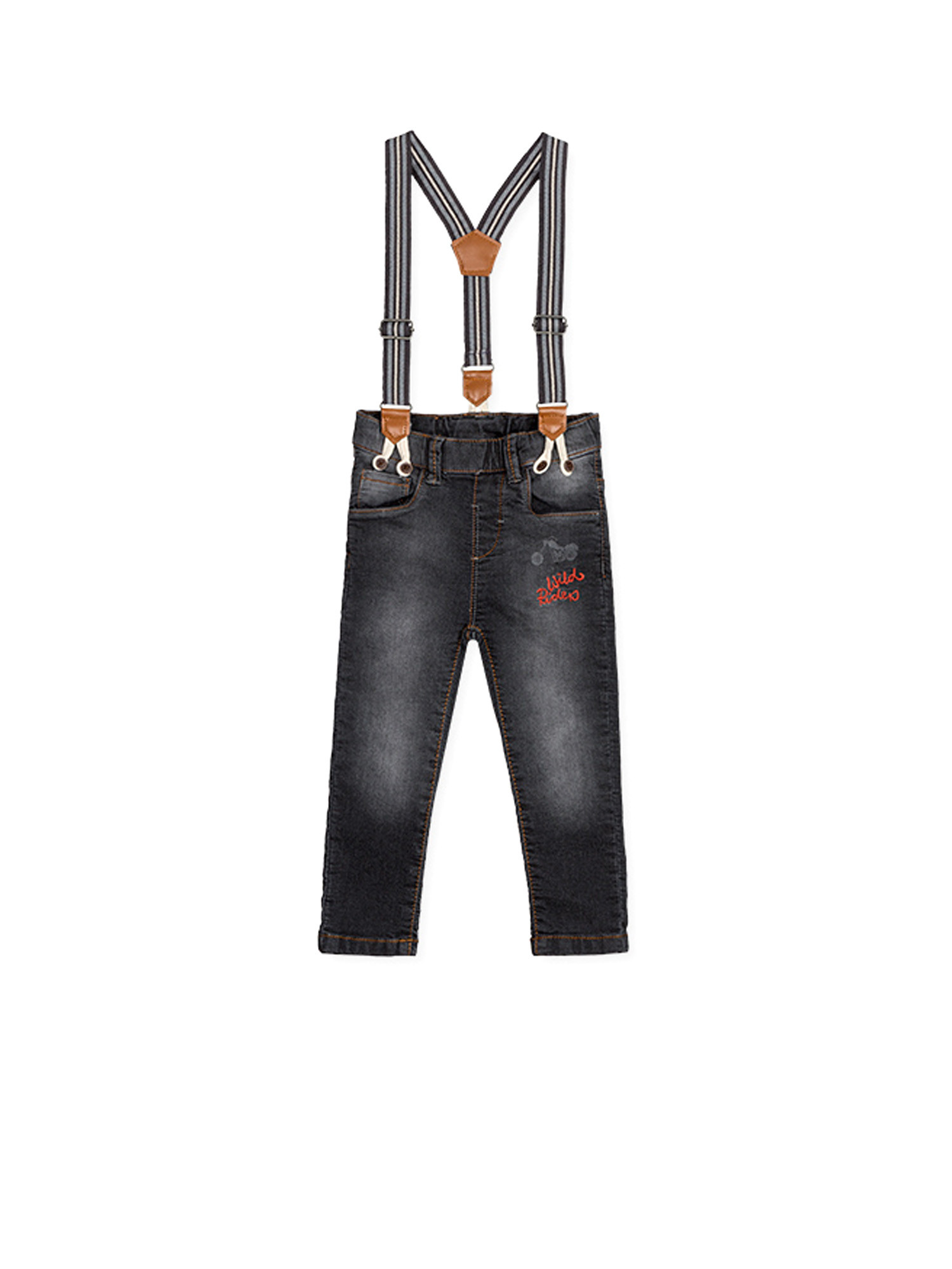 Description : jean à bretelles pour enfant.
