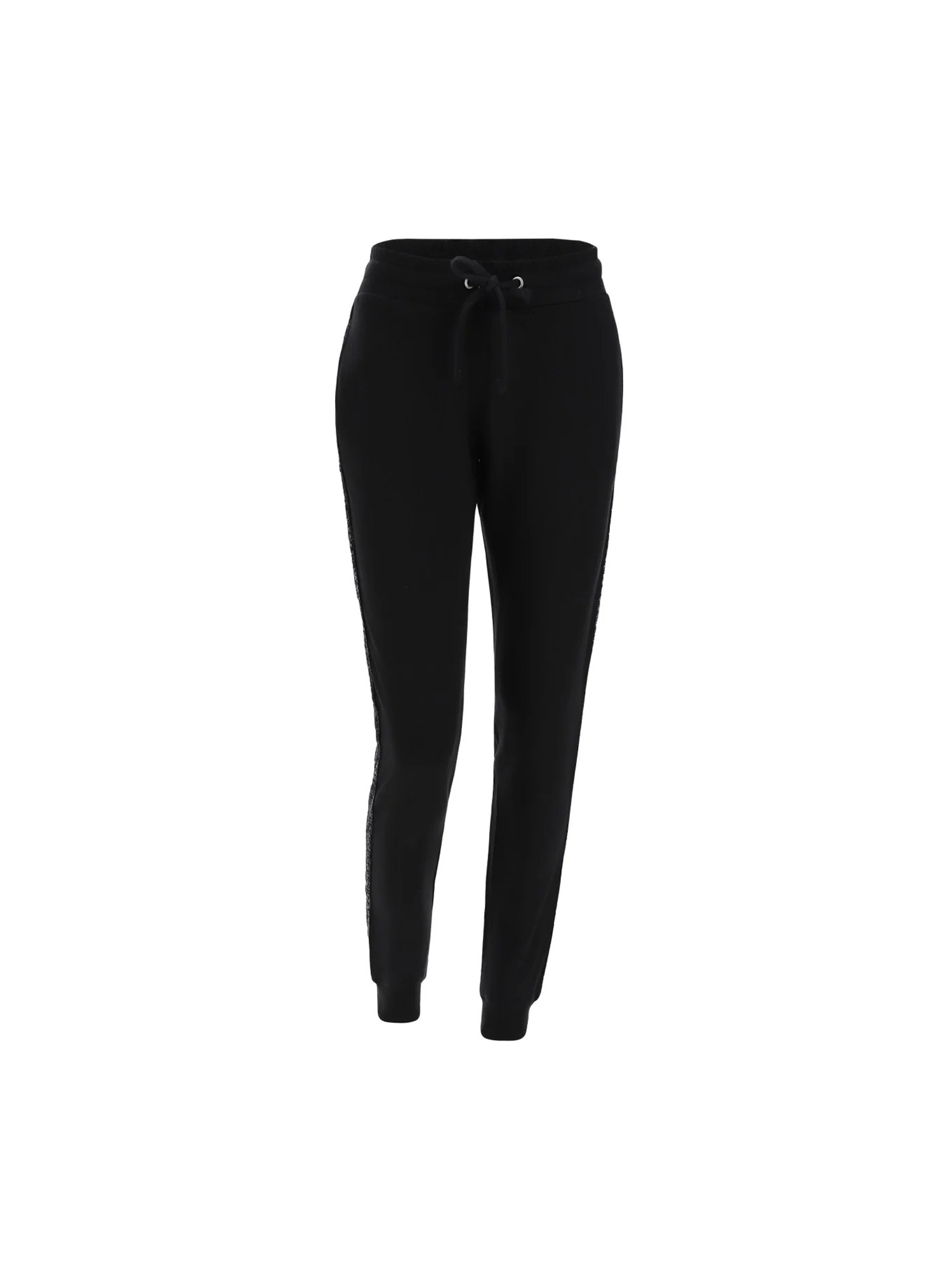 Description: Pantalon de sport en molleton de viscose décoré sur les longueurs avec empiècements en sequins et ruban logo.