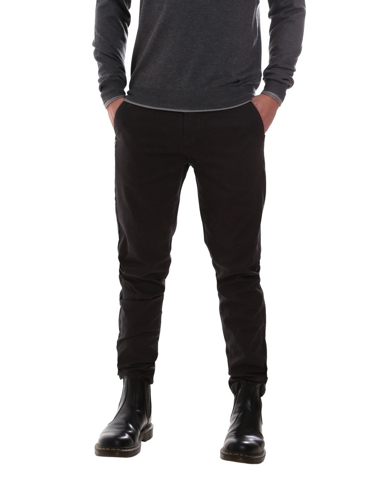 Le modèle a une coupe ajustée avec une taille régulière et une jambe étroite en bas.
