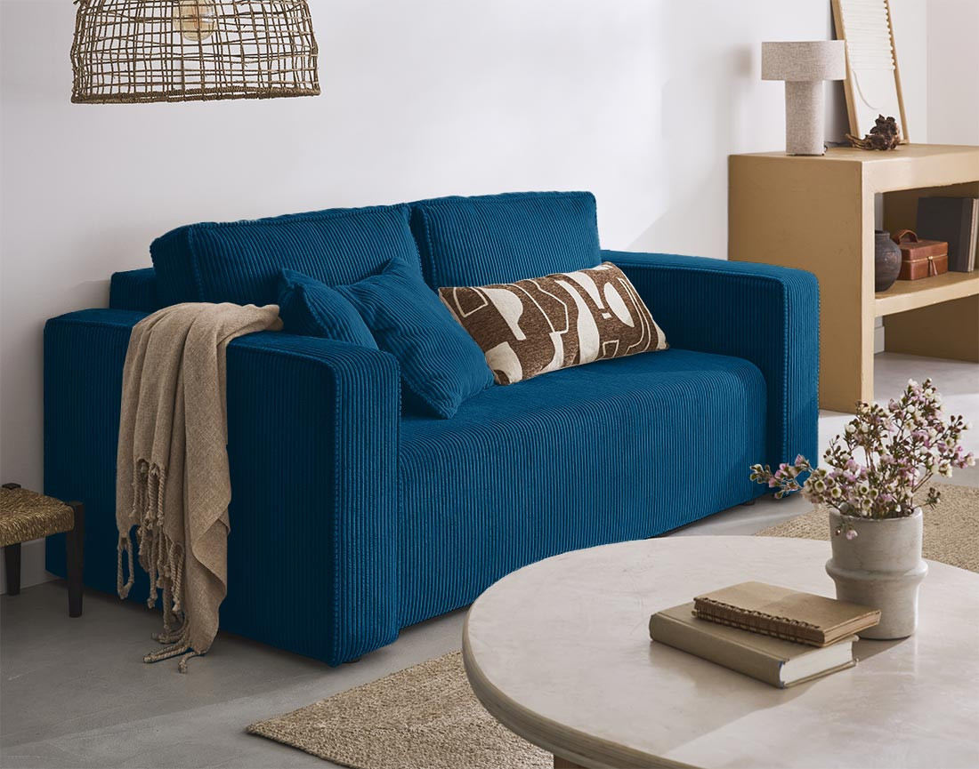 Vous êtes à la recherche d’un canapé élégant et confortable pour votre salon ? Voici Topaze, un canapé droit 2 places en velours côtelé qui allie style et confort. À la fois compact et raffiné, il s’adapte parfaitement aux petits espaces. Grâce à son revêtement en velours côtelé, il invite à la détente et au confort, tout en étant un véritable atout déco. Son large choix de couleurs permet de s’adapter parfaitement à tous les intérieurs. Optez pour la teinte que vous préférez parmi le beige apaisant, le gris intemporel, le bleu ardoise raffiné, le terracotta chaleureux ou le vert sauge subtil. Deux coussins décoratifs de la même couleur sont livrés avec.