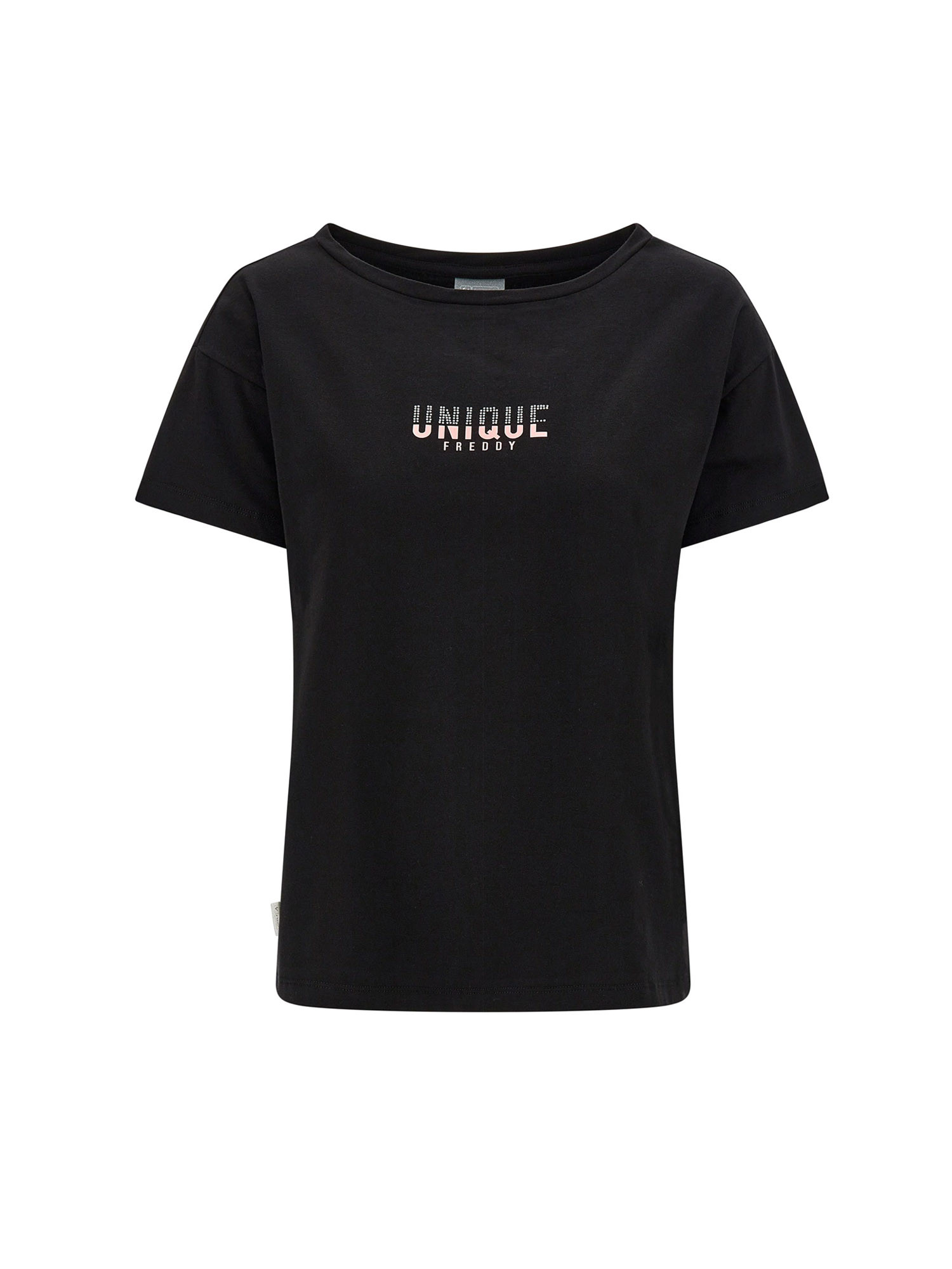 Description : T-shirt coupe confortable en jersey stretch avec graphique UNIQUE Freddy sur le devant composé de strass et d'un imprimé laminé argenté.