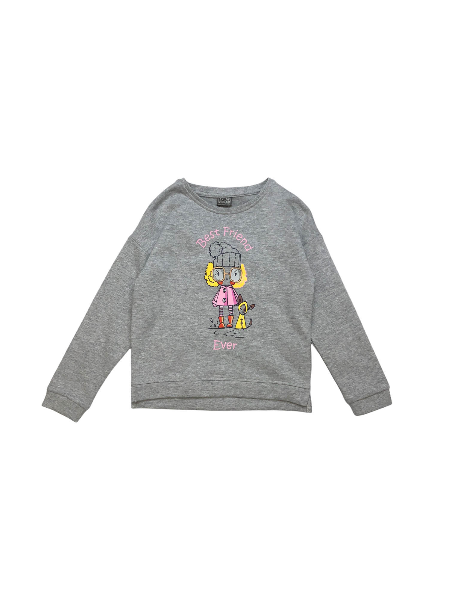 Description : sweat-shirt en coton de couleur unie avec poupée et texte imprimé sur le devant pour les filles.