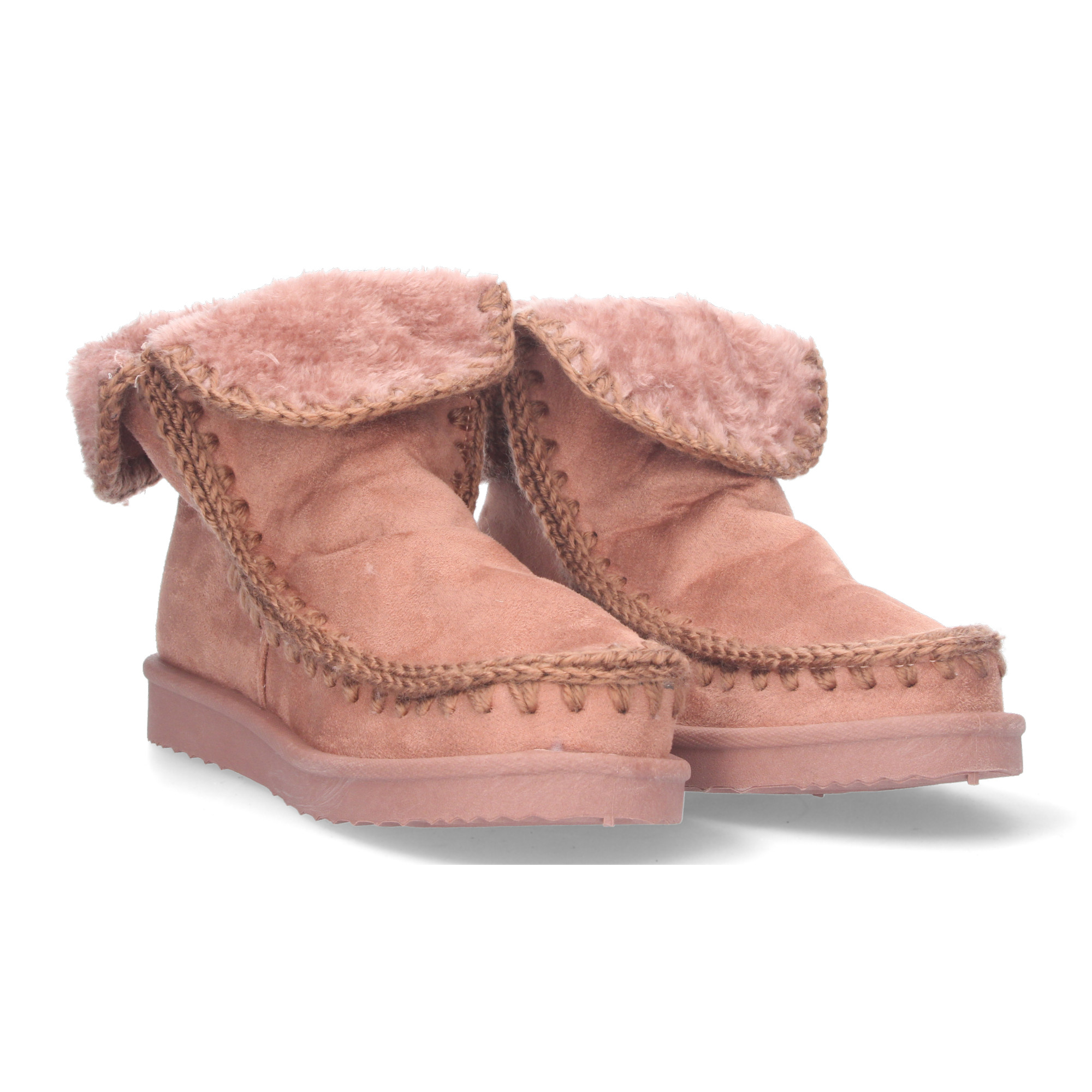 Bottine plate pour femme, style australien, matière veloutée, doublée de fourrure, bout rond.